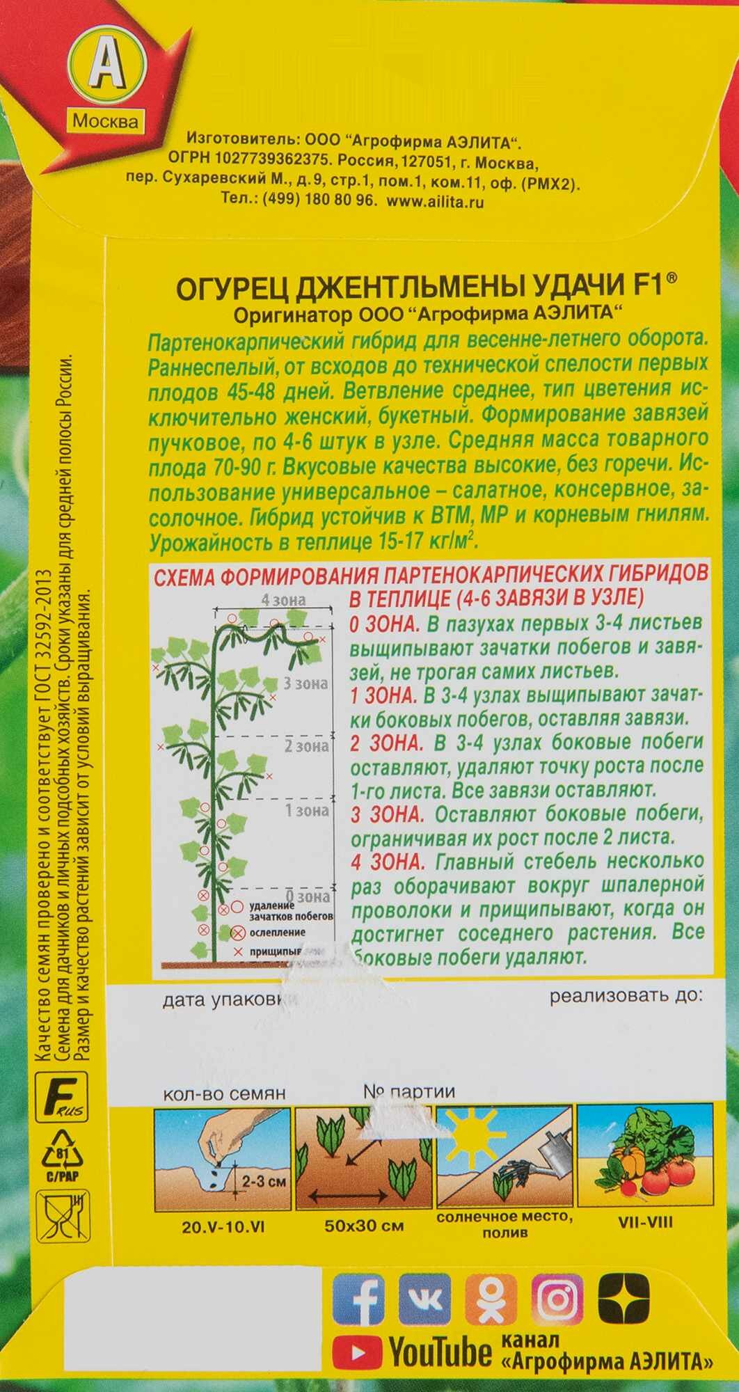 Огурец Джентльмены удачи F1 10 шт. Аэлита