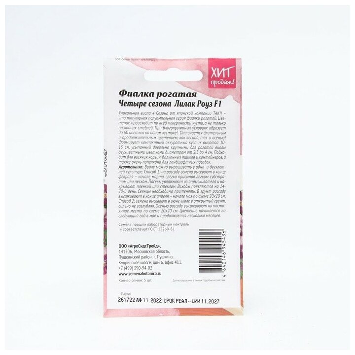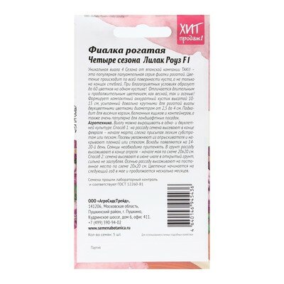 Сервис сравнения цен СкидкаГИД предлагает сравнить цены на товар «Семена цветов Агросидстрейд фиалка рогатая Четыре сезона Лилак Роуз F1»
