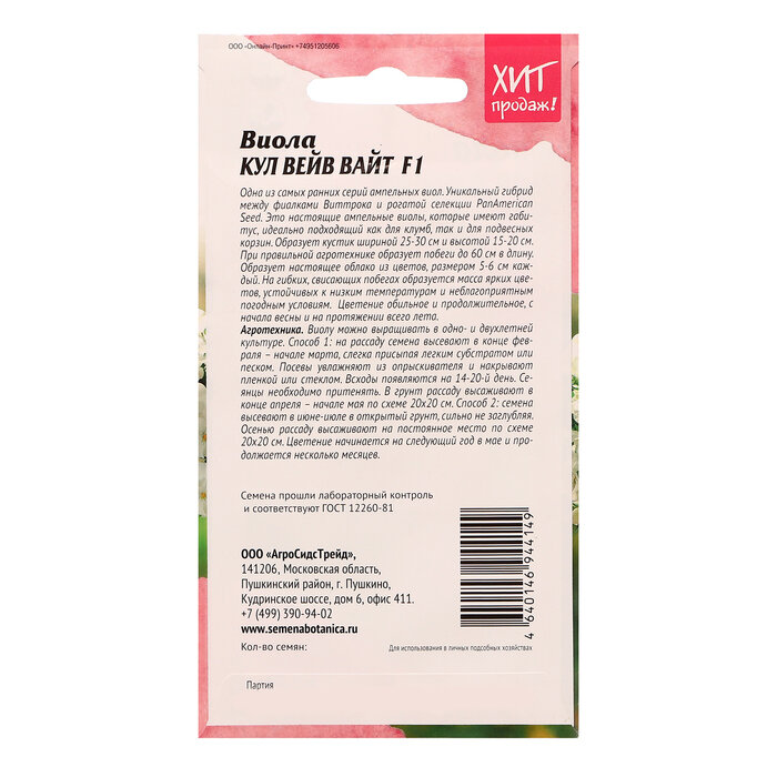 Сервис сравнения цен СкидкаГИД предлагает сравнить цены на товар «Семена цветов Агросидстрейд виола Кул Вейв Вайт F1 5 шт.»