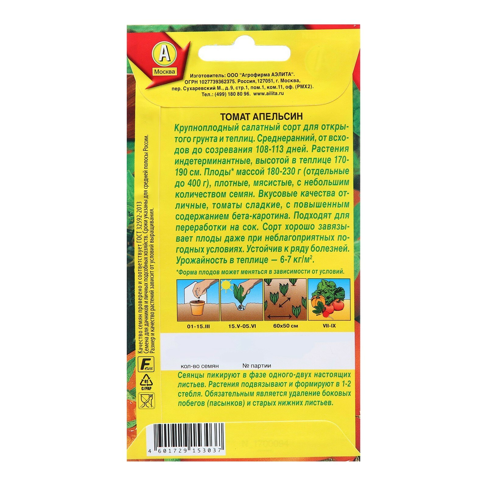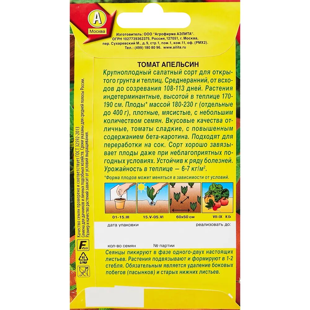 Сервис сравнения цен СкидкаГИД предлагает сравнить цены на товар «Семена овощей Аэлита томат Апельсин 20 шт.»