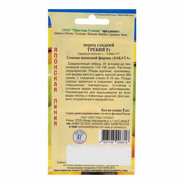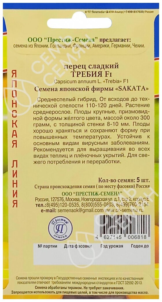 Семена овощей Престиж перец сладкий Требия F1 ПРЕСТИЖ СЕМЕНА