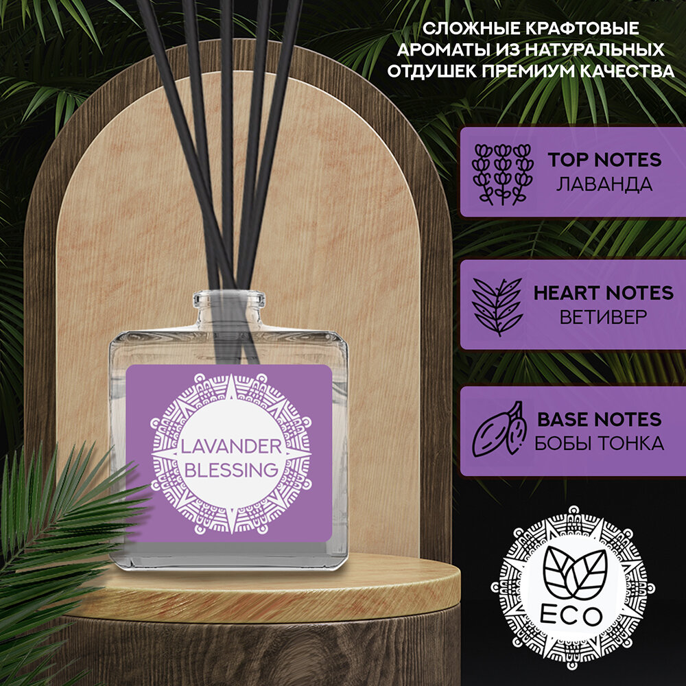 Диффузор LAVANDER BLESSING с ротанговыми палочками - простой и эффективный способ придать помещению приятный аромат.Палочки находятся в стеклянной бутылочке с ароматизированной жидкостью.Чтобы аромат оставался насыщенным, пару раз в день доставайте палочки и переворачивайте их, вставляя другим концом в емкость.Степень интенсивности запаха может регулироваться объемом ароматической жидкости и количеством палочек.Аромат сохраняется от 1 до 4 месяцев.Ноты аромата: лаванда, ветивер, бобы тонка.