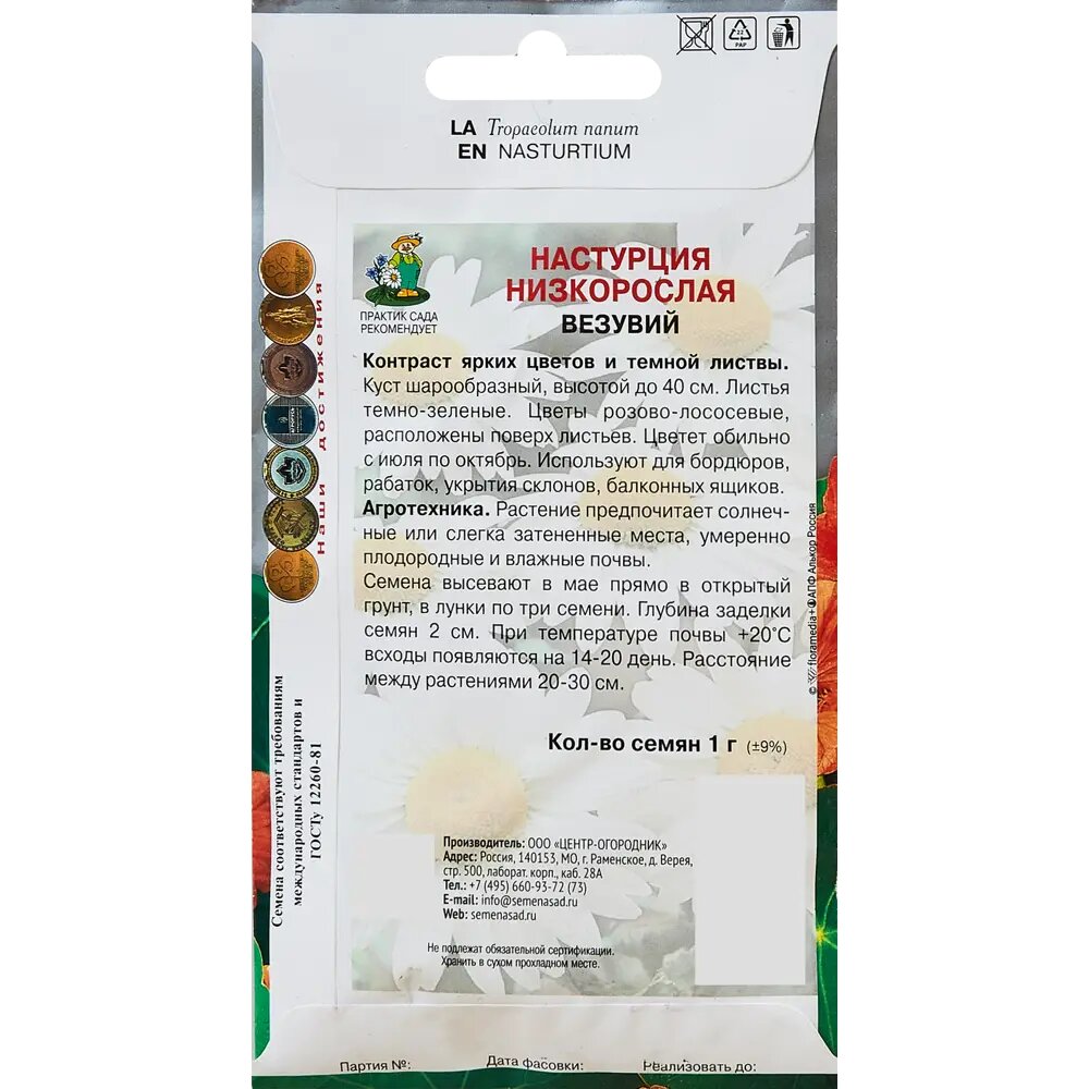 На сегодняшний день товар «Семена цветов Поиск настурция низкорослая Везувий» можно купить с кешбеком в 1 магазине: Яндекс.Маркет