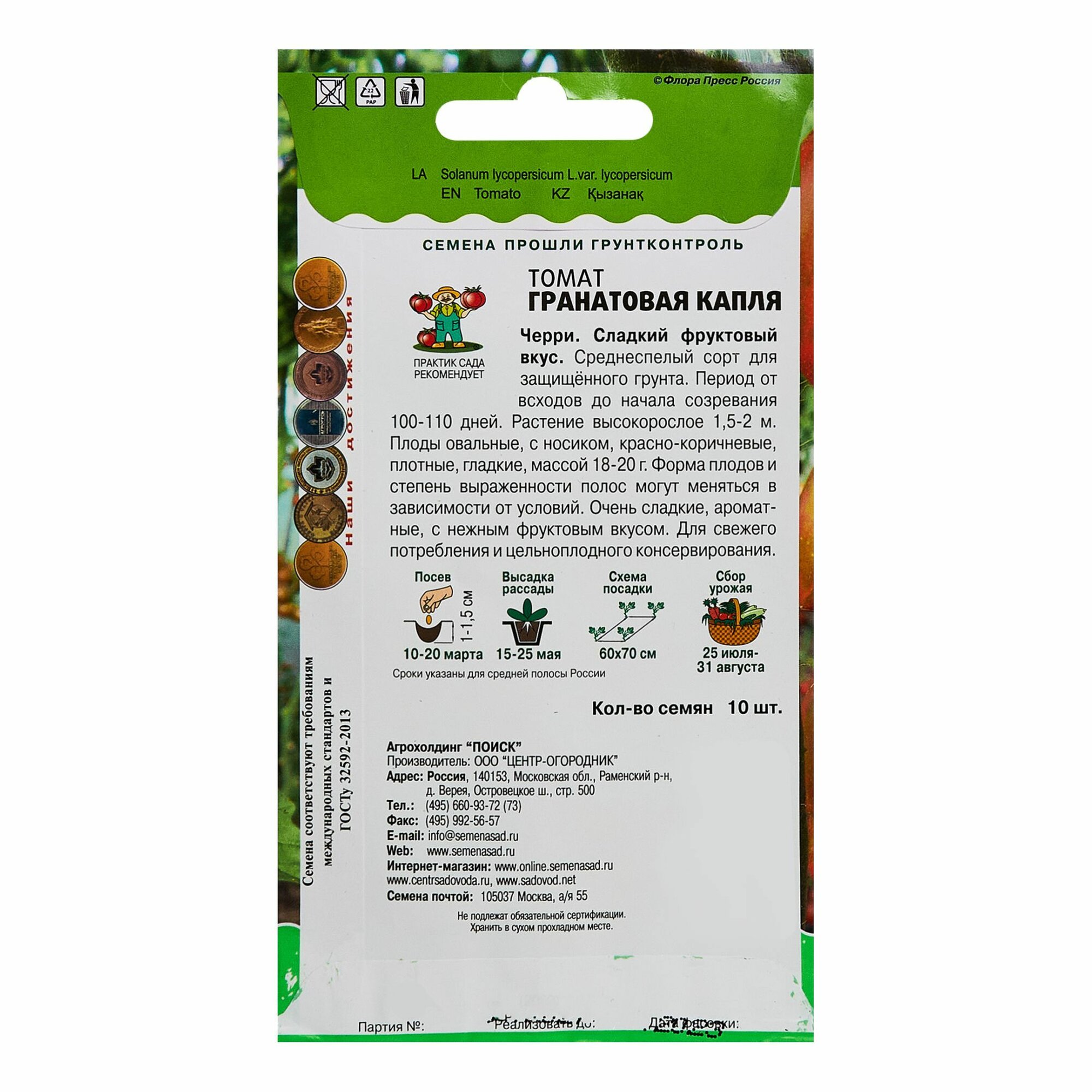 Сервис сравнения цен СкидкаГИД предлагает сравнить цены на товар «Семена овощей Поиск томат Гранатовая капля 10 шт.»