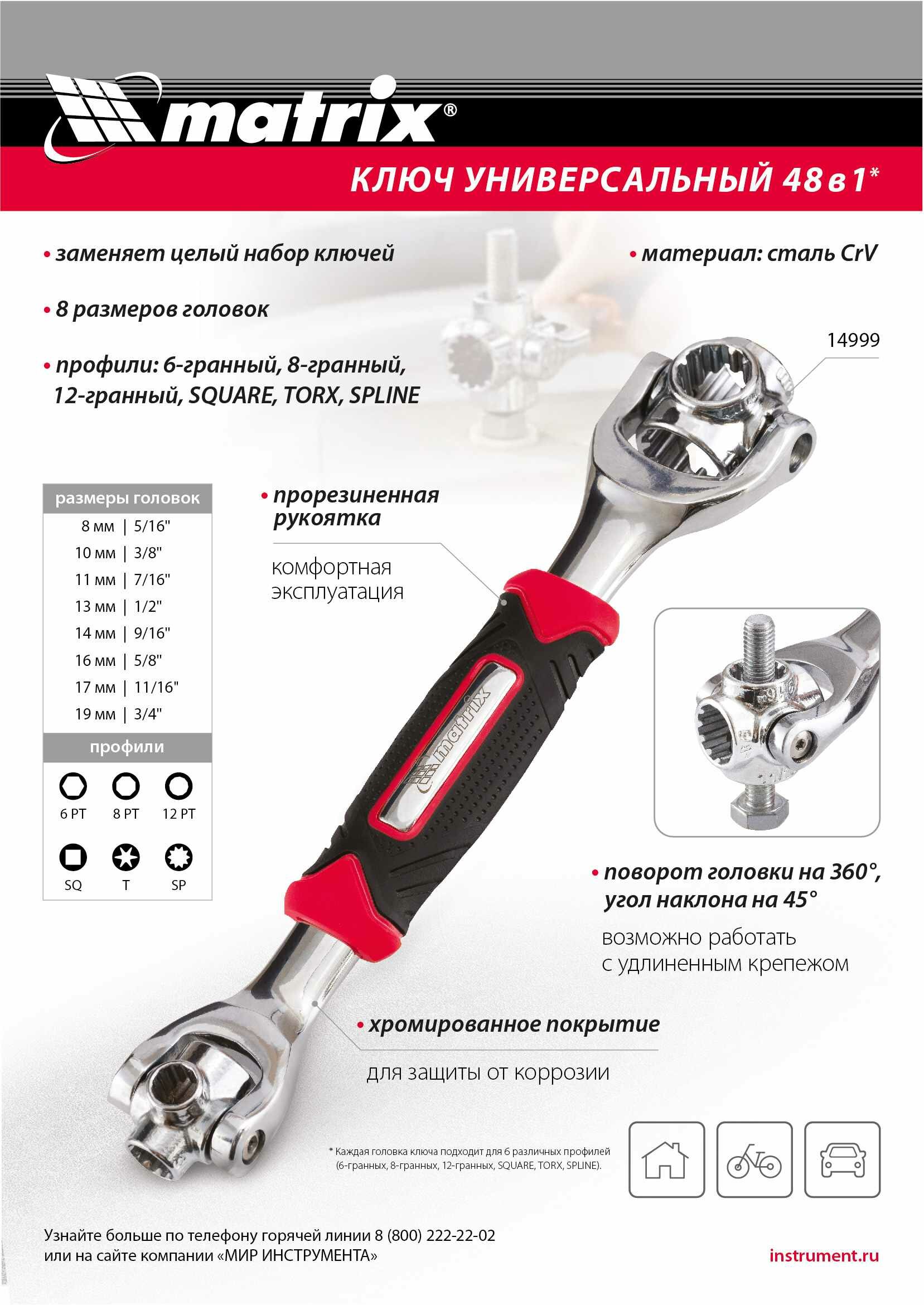 Ключ универсальный Matrix 14999 48 в 1 8-19 мм