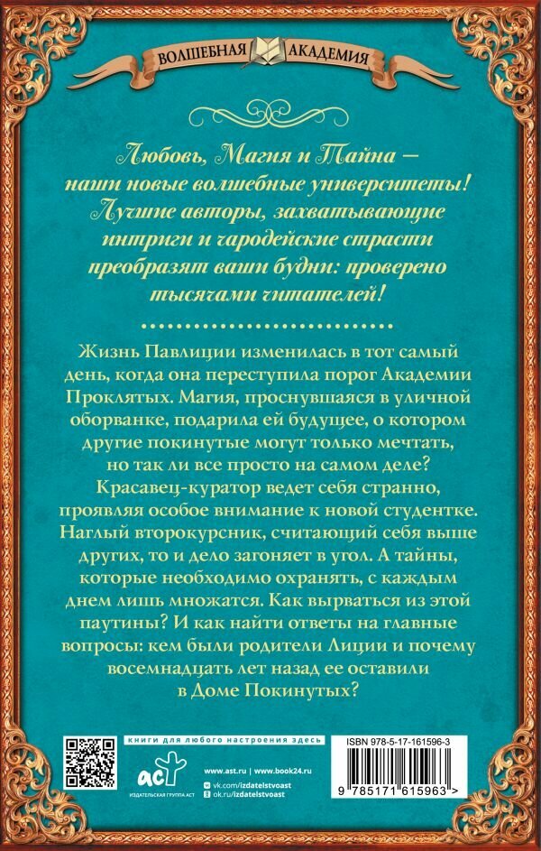 Жизнь Павлиции изменилась в тот самый день, когда она переступила порог Академии Проклятых. Магия, проснувшаяся в уличной оборванке, подарила ей будущее, о котором другие покинутые могут только мечтать, но так ли все просто на самом деле?