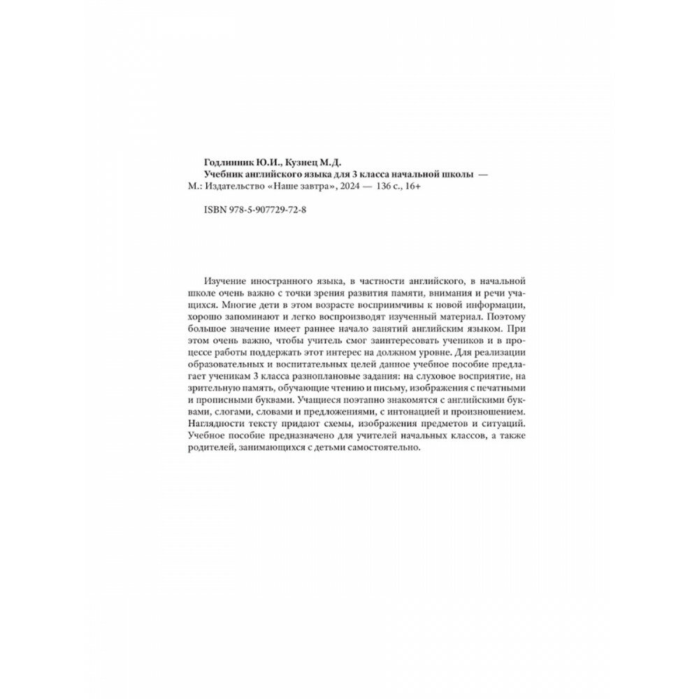 Учебник английского языка для 3 класса начальной школы (Годлинник Юдифь Ильинична; Кузнец Марианна Давидовна); Наше Завтра, 2024