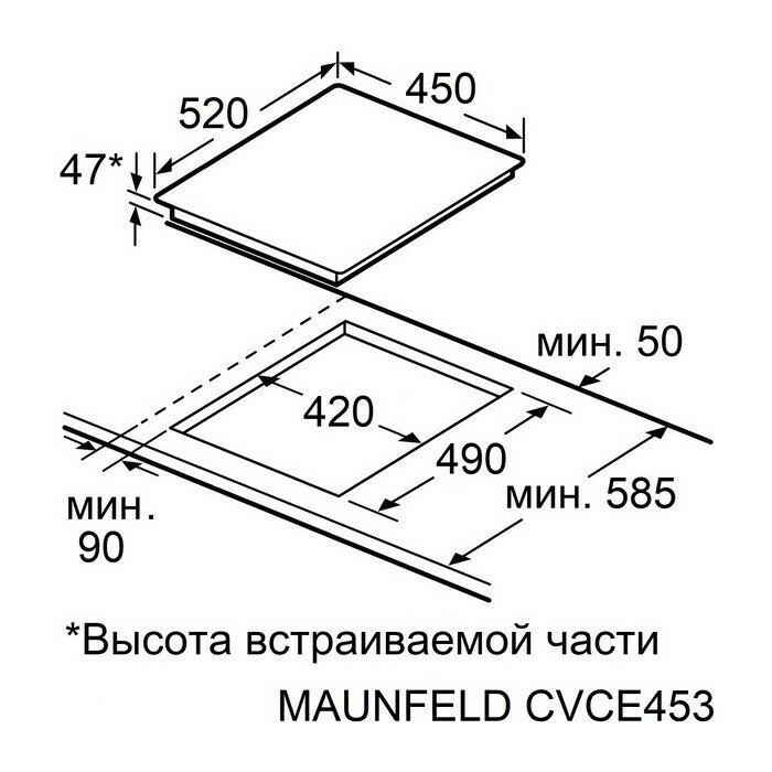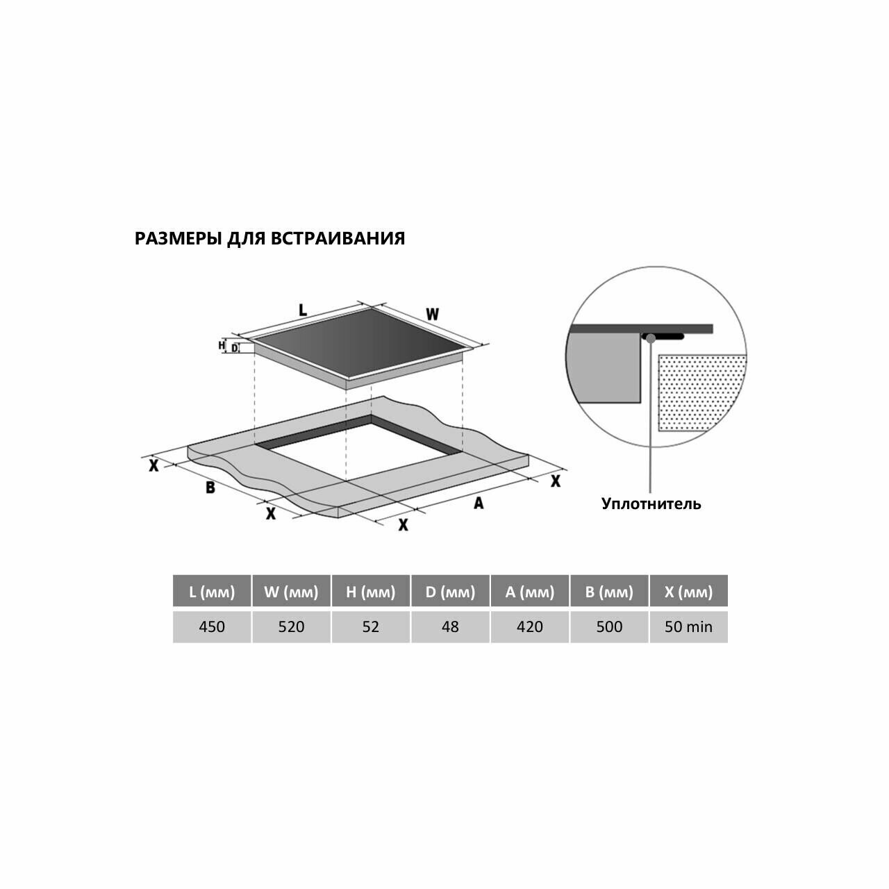 | Размеры для встраивания (ШхГ) | 42х50 см |