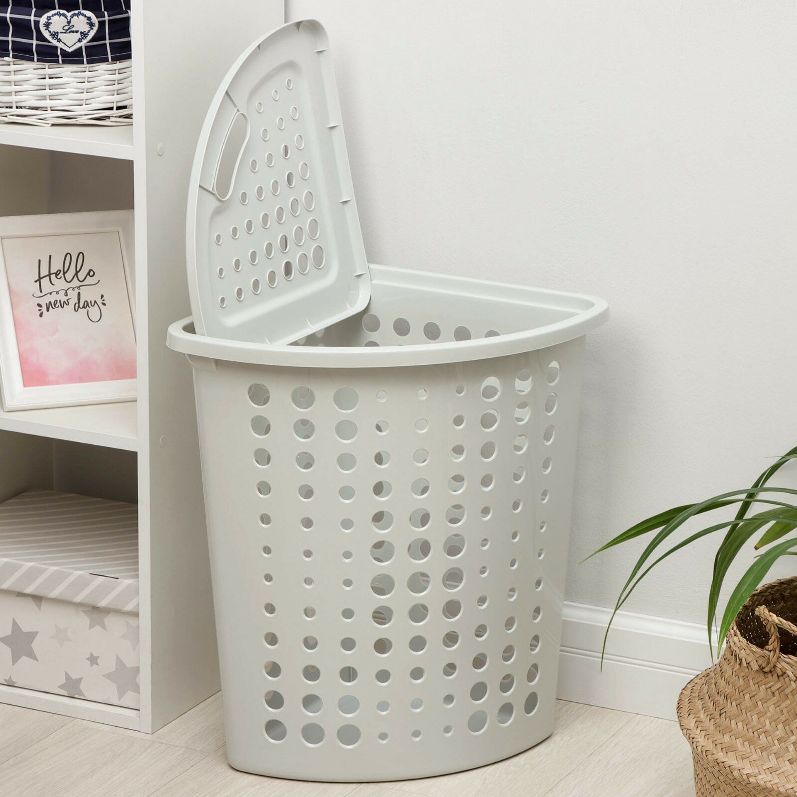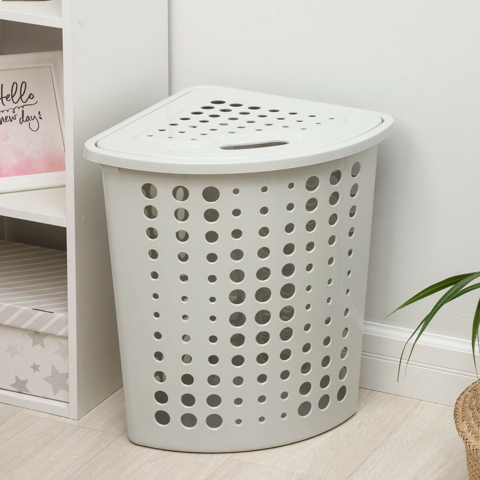 Корзина для хранения белья перед стиркой поможет функционально организовать пространство ванной комнаты. Крышка скрывает содержимое корзины, а также может служить дополнительным местом для хранения легких туалетных принадлежностей. Перфорация обеспечит проветривание белья. Благодаря угловой форме, корзина легко разместится в ванной комнате. Корзина изготавливается из прочного полипропилена, отвечающего требованиям влажного помещения.