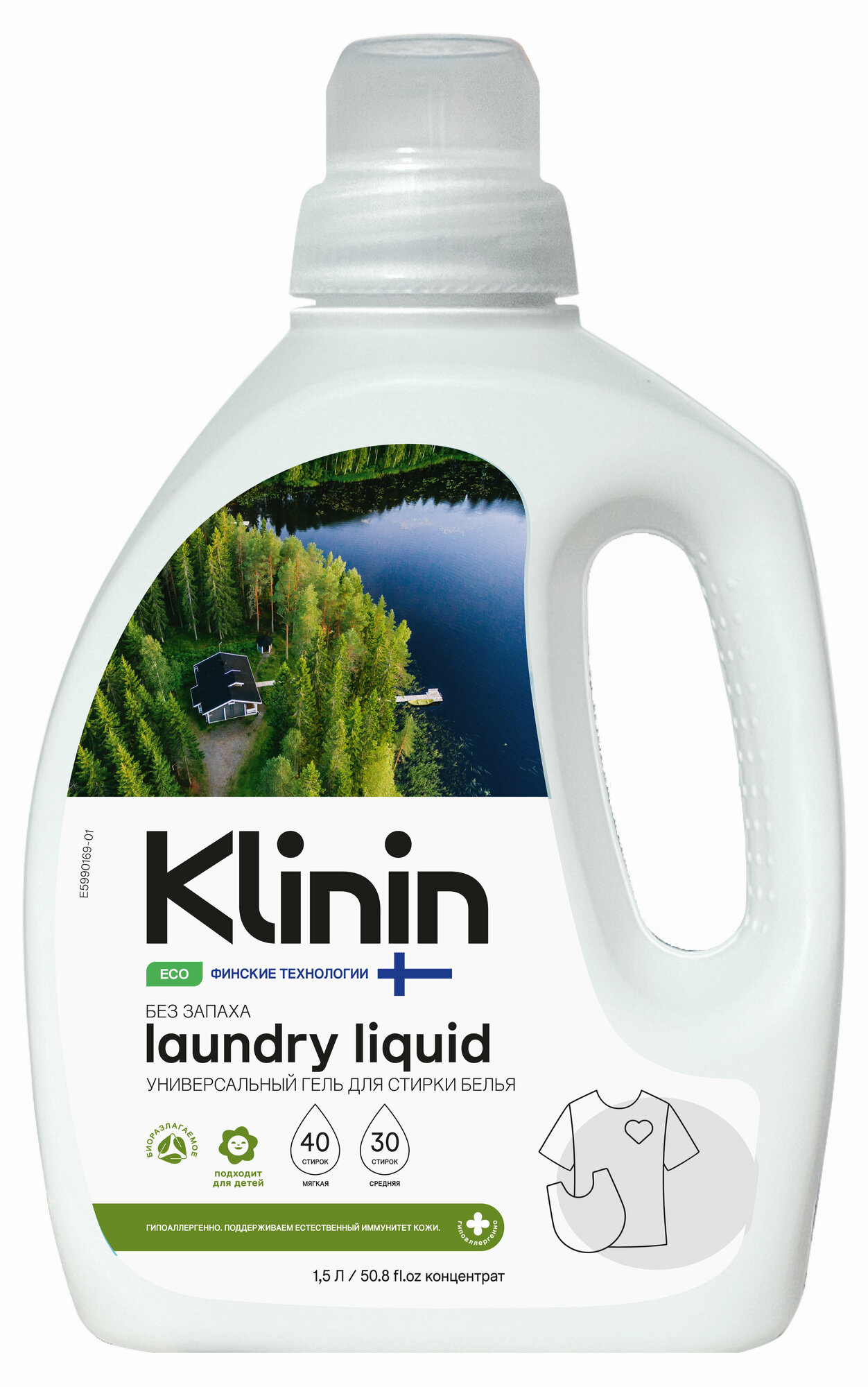 Гель для стирки Klinin Универсальный без ароматизаторов и красителей 15 л