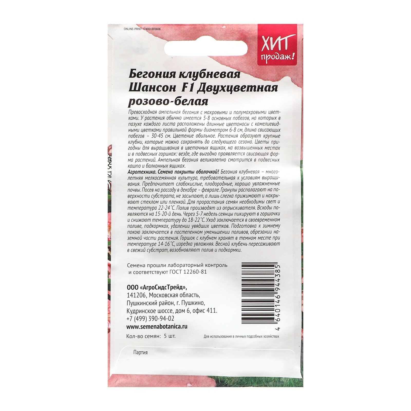 Сервис сравнения цен СкидкаГИД предлагает сравнить цены на товар «Семена цветов Агросидстрейд бегония Шансон Двухцветная F1 розово-белый»