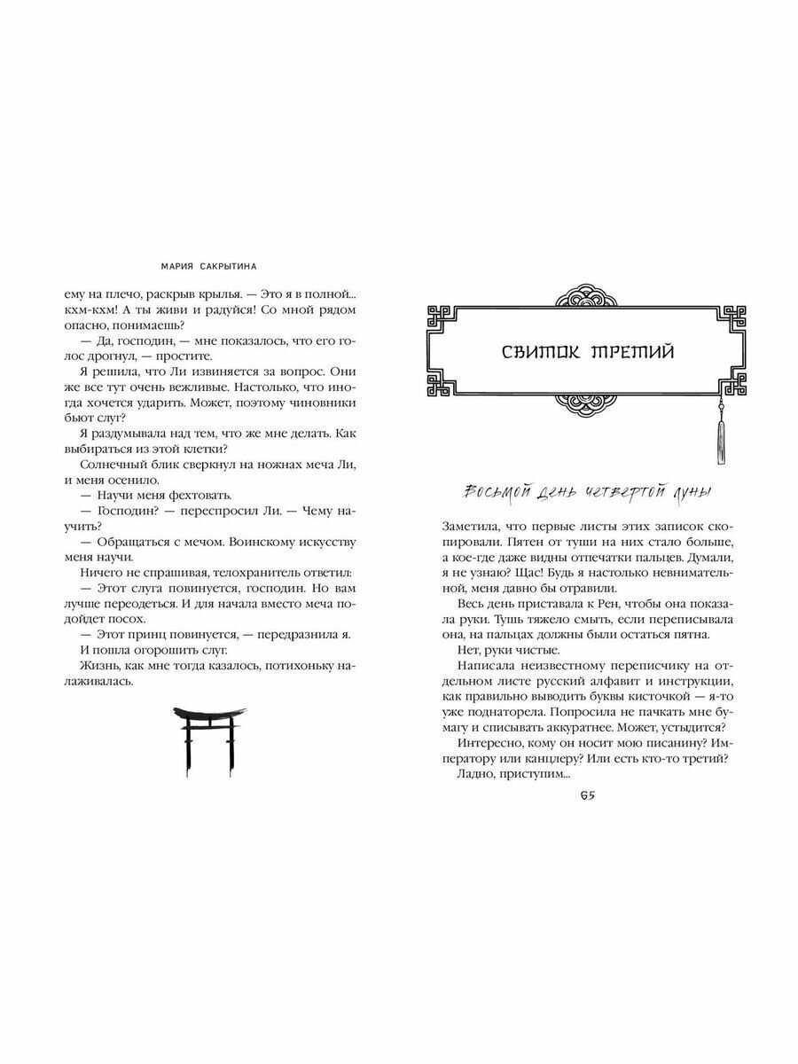 Удивительно яркая и необычная одиночная история в азиатском сеттинге от Марии Сакрытиной! Классический сюжет о перерождении души в новом авторском прочтении! Вас ждут два враждующих государства, напоминающих Китай и Японию! Готовьтесь окунуться в мир японской мифологии, культуры и восточного менталитета! Эта история, наполненная юмором, романтикой и неожиданными сюжетными поворотами сумеет вас удивить! Придется по душе фанатам «Злодейского пути» и романа «Полусолнце»! Однажды я умерла, и мир, в котором я оказалась, стал моей реальностью. Здесь духи-екаи блуждают среди смертных, лисы-оборотни дурачат людей, а на дороге среди путников легко можно встретить енота-тануки. Империей тут правит сын Солнца, и говорят, что он могущественный колдун. Я не помню, кто я и кем была раньше. Но недавно очнулась в теле наследного принца Рюичи, и его враги стали моими врагами. У меня нет друзей, мне некому довериться, я ничего не знаю о жизни при дворе. Меня окружают враги и предатели. За каждым углом поджидает опасность, каждое блюдо приправлено ядом. Однако умирать во второй раз я не собираюсь. Пусть шансов у меня немного, но я выживу во что бы то ни стало. И если для этого нужно договориться с нежитью: лисами-оборотнями или мстительными призраками - я это сделаю. И никто: ни император, ни духи, ни колдуны - меня не остановит.