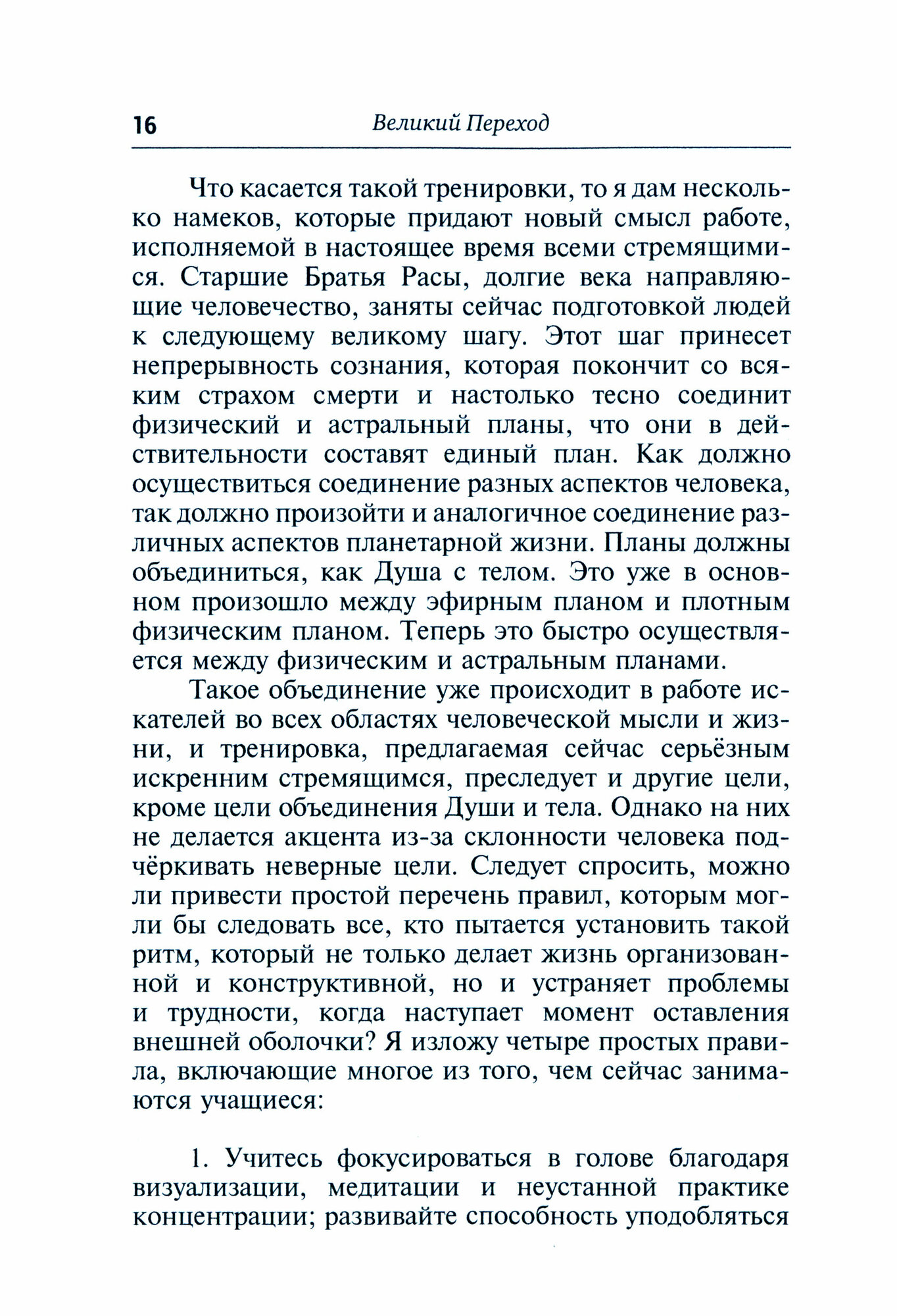 Великий переход. Проблема бессмертия и смерти. Выдержки из произведений Тибетского Учителя Джуал Кхуула (психографированные А. А. Бейли), писем Учителей Вневременной Мудрости в период Теософского общества, а также древнеперсидского учения. В книге собраны научные материалы о Великом таинственном Переходе - как его видят Учителя Вневременной Мудрости на внутреннем плане. Следующие двести лет засвидетельствуют понимание этого Великого процесса, которому подвержены все формы, произойдет принятие факта существования Души, ее наличия. Душа будет признана сущностью, мотивирующим импульсом и духовным центром любой проявленной формы. Наше сущностное бессмертие будет продемонстрировано и признано как факт природы.