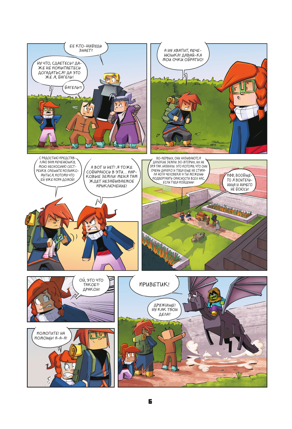 Девятая часть красочного комикса по «Майнкрафту»! Команду друзей ждет новое увлекательное приключение! Минус, Блерп и Багель на спине своего дракона Чупи отправляются в Дальние земли. Они тщательно подготовились к этому путешествию, но несмотря на это впереди их ждет еще много неожиданностей. На этот раз их компанию разбавляет младшая сестра Багель - Печенюшка, которая незаметно спряталась в багаж. Новая попутчица привносит множество забавных моментов и сюрпризов, не давая ребятам соскучиться во время путешествия. Довольно скоро ребята понимают, что кто-то выдает себя за Минуса. Присоединяйтесь к путешествию и с помощью смекалки поймайте самозванца и выясните его настоящую личность!