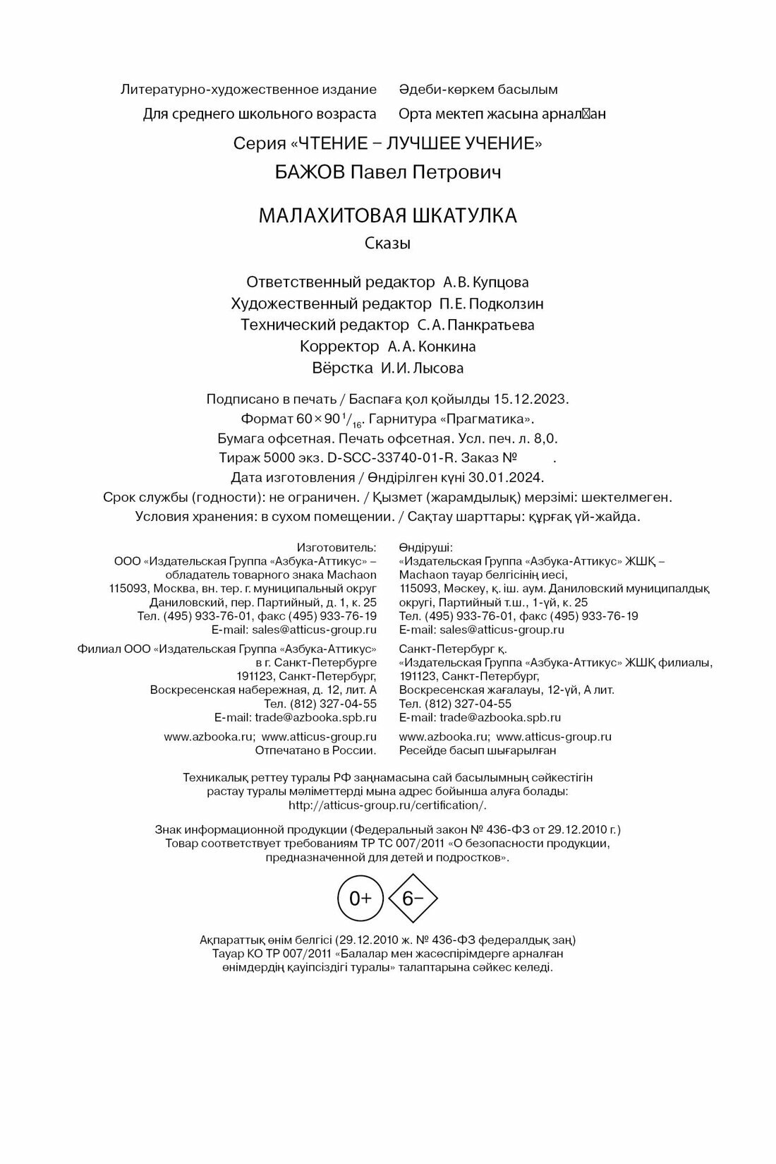 На сегодняшний день товар «Книга: Малахитовая шкатулка. Сказы (Бажов Павел Петрович); Махаон, 2024» можно купить с кешбеком в 3 магазинах: book24, Буквоед, Читай-город