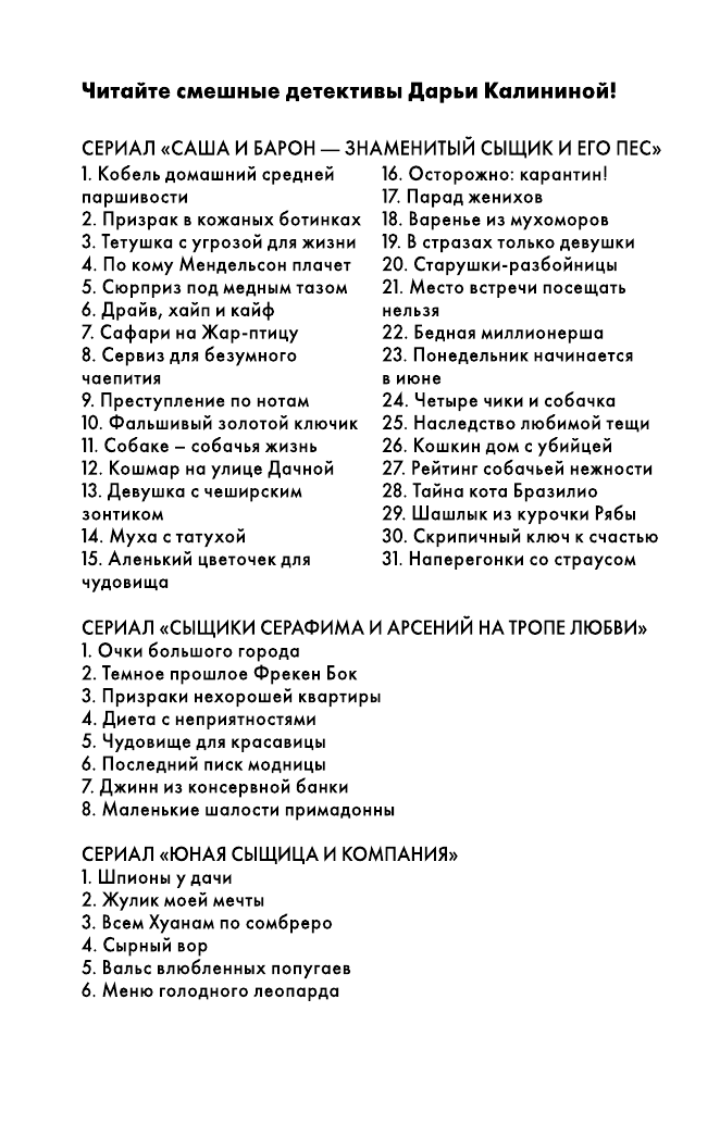 | Серия | Новые иронические детективы Дарьи Калининой (обложка) |