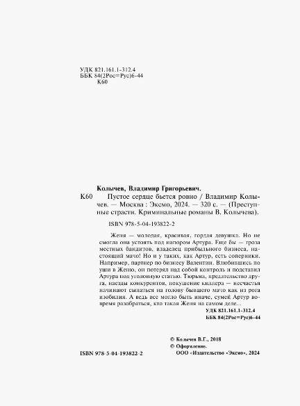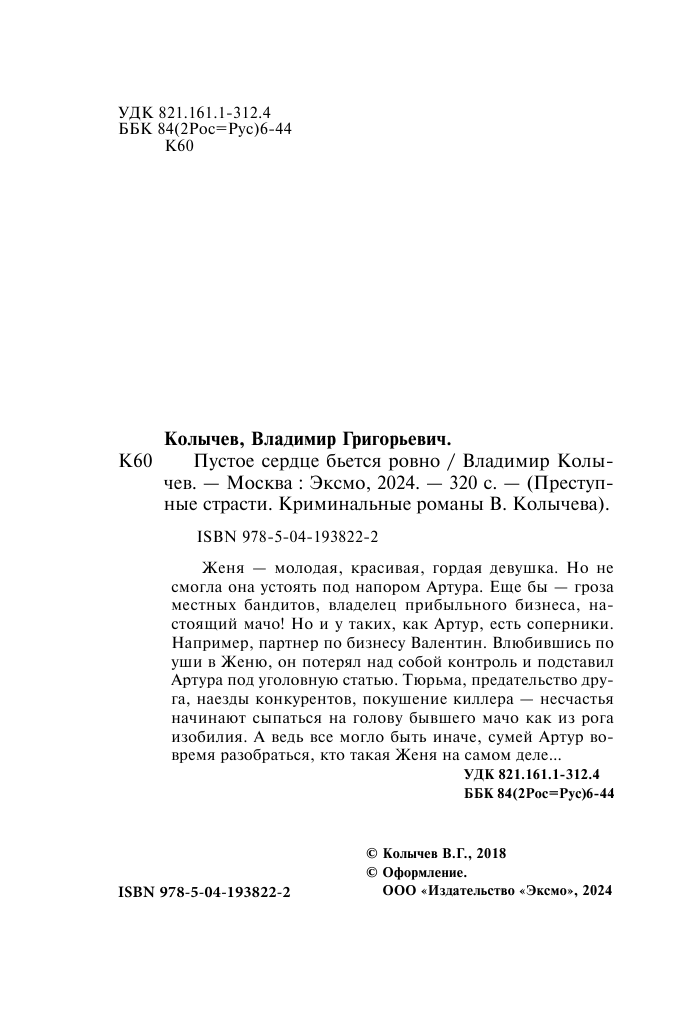 Пустое сердце бьется ровно (Владимир Колычев); Эксмо, Редакция 1, 2024