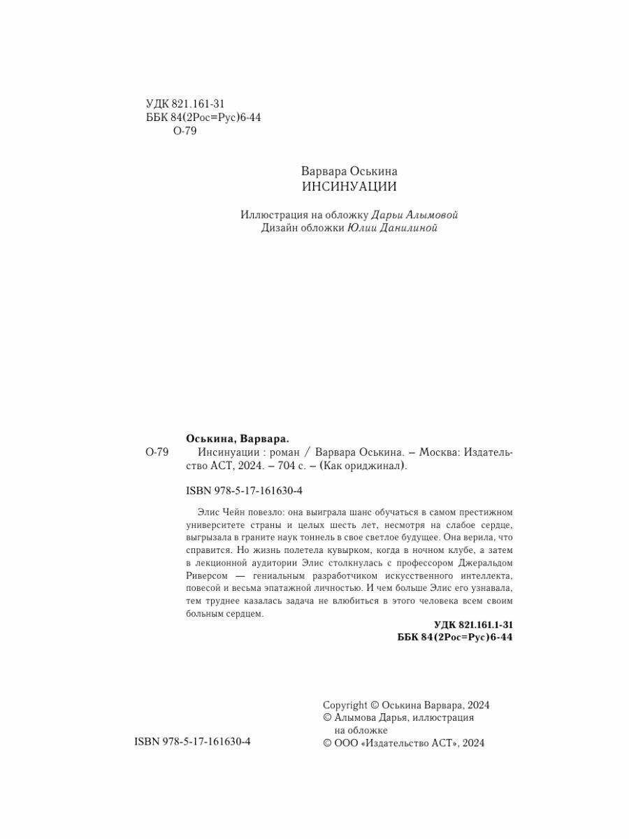 Книга: Инсинуации (Оськина Варвара Алексеевна); ООО "Издательство Астрель", 2024