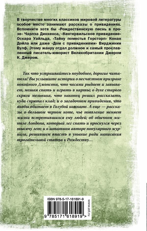 Устраивайтесь поудобнее, дорогие читатели! Вы услышите истории о несчастном призраке покойного Джонсона, что часами рыдает и завывает, мешая спать и играть в карты; о духе старого скряги мельника, что, наконец, решил рассказать, куда спрятал клад; и о загадочном привидении, что якобы обитает в голубой комнате. А еще — рассказы о большом черном коте, чье появление меняет жизни встретившихся ему людей; об обычном жителе Лондона, который лег спать и проснулся через тысячу лет; и о штатном авторе популярного журнала, решившем впасть в уныние ради написания трогательной статьи к Рождеству…