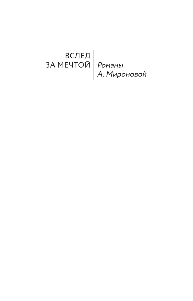 | Серия | Вслед за мечтой. Романы А. Мироновой |