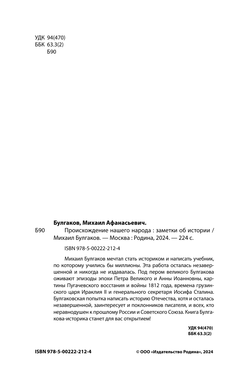 Происхождение нашего народа. Заметки об истории (Михаил Булгаков); Эксмо, 2024