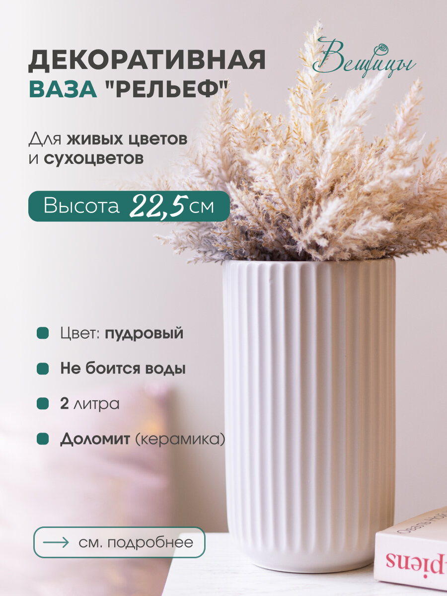 Сервис сравнения цен СкидкаГИД предлагает сравнить цены на товар «Ваза Вещицы Рельеф пудровая 180 мм Cha12-M»