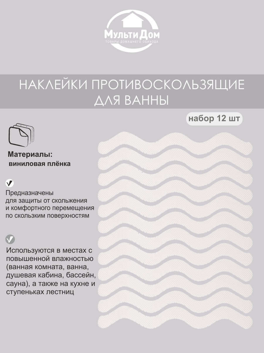 Наклейки для ванны противоскользящие Мультидом 12 шт