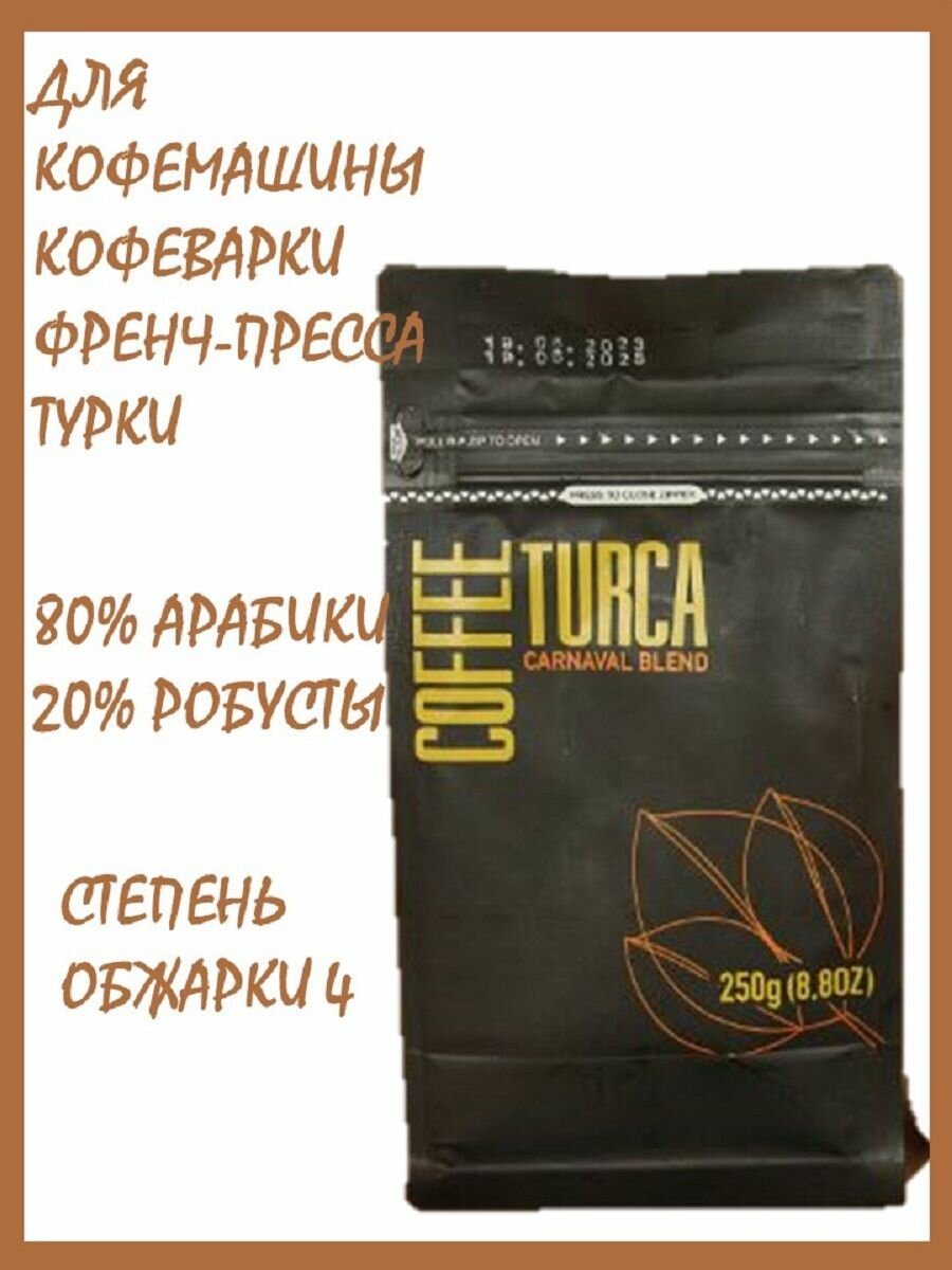 Зерновой кофе торговой марки Coffee Turca Carnaval Blend это качественная 100 % Арабика (Колумбия, Бразилия). Темная обжарка. Кофе идеально подходит для приготовления эспрессо, капучино, латте, мокко и других напитков. Его можно заваривать в автоматическом аппарате, турке, рожковой кофеварке, френч-прессе и альтернативным методом заваривания.