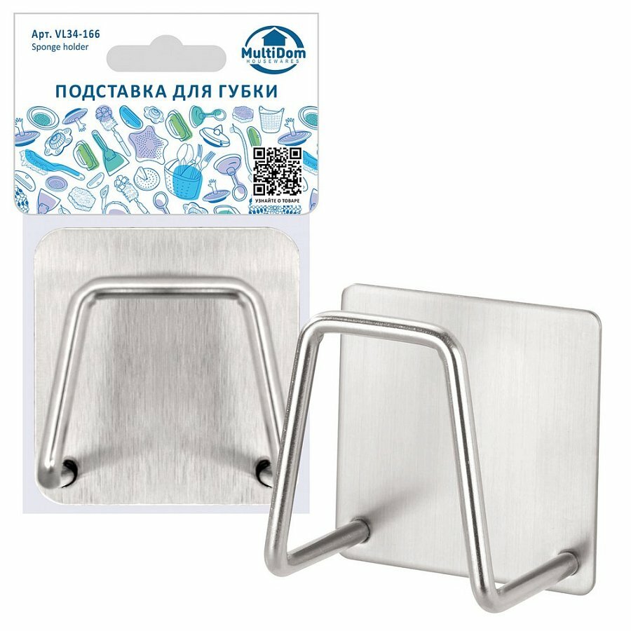 Используется для хранения губки на кухне или в ванной комнате. Также подставку можно использовать для хранения ножниц и различных кухонных принадлежностей. Подставка крепится на любую гладкую поверхность (плитка, стекло, металл, полимерное или ламинированное покрытие) при помощи пластины на клеевой основе. Перед креплением, поверхность следует обезжирить. Изготовлено: подставка из коррозионностойкой (нержавеющей) стали, клеящаяся пластина из поливинилхлорида. Размер: 5х5 см.