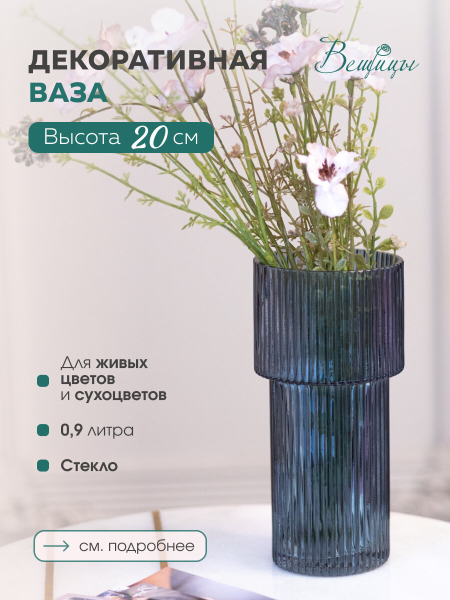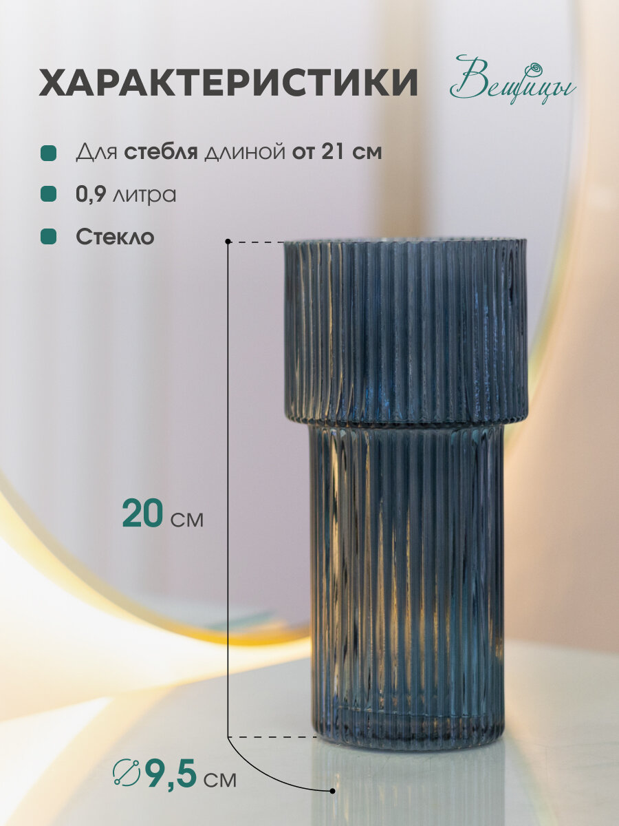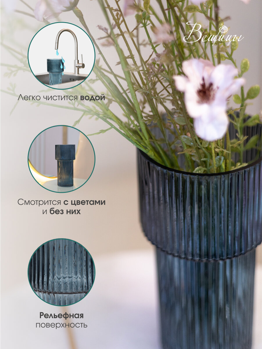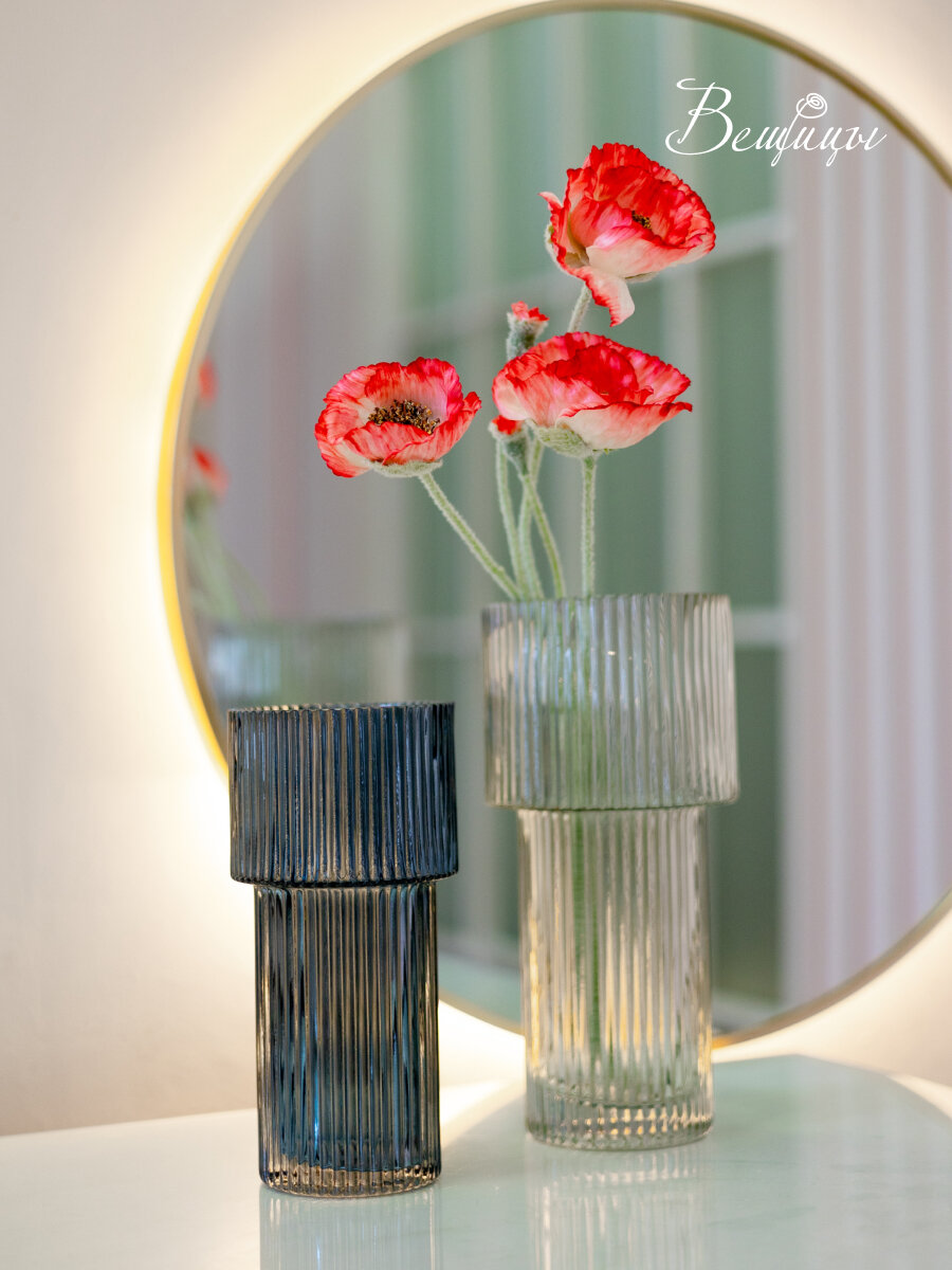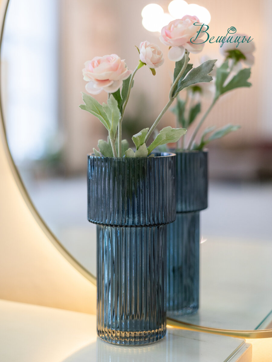 Декоративная ваза из рельефного стекла от бренда "Вещицы" даже без цветов выглядит шикарно. При попадании света рельефная поверхность создает особенное сияние и неповторимый характер. Придаст помещению неповторимый характер.