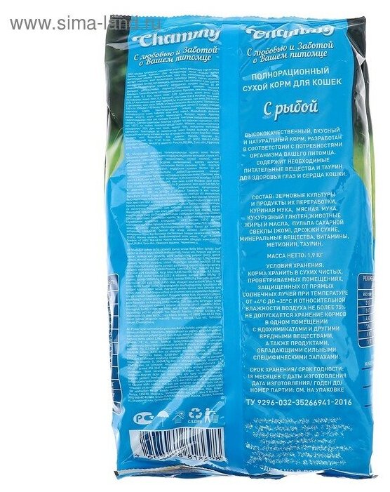 Сервис сравнения цен СкидкаГИД предлагает сравнить цены на товар «Сухой корм для кошек Chammy с рыбой 19 кг»
