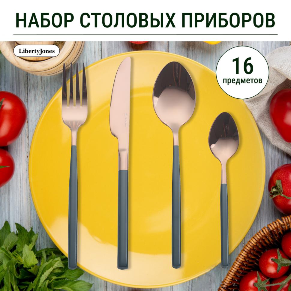 На сегодняшний день товар «Набор столовых приборов Liberty Jones Duality 16 предметов на 4 персоны золото (LJ0000207)» можно купить с кешбеком в 1 магазине: Яндекс.Маркет