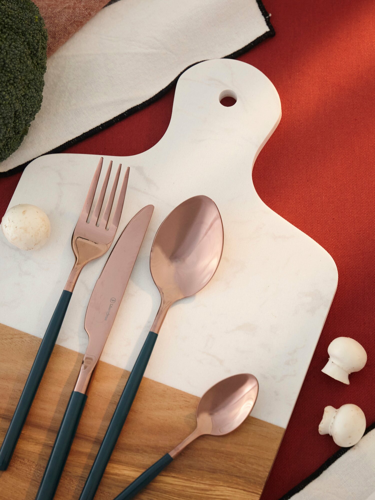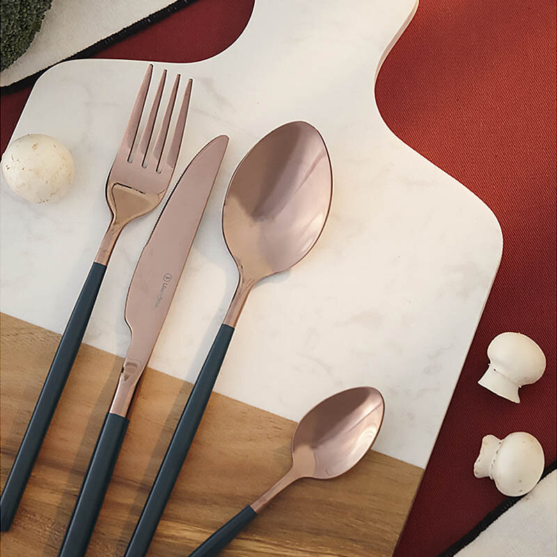 - Отличительная особенность серии цветные ручки, которые добавляют в сервировку яркий акцент.