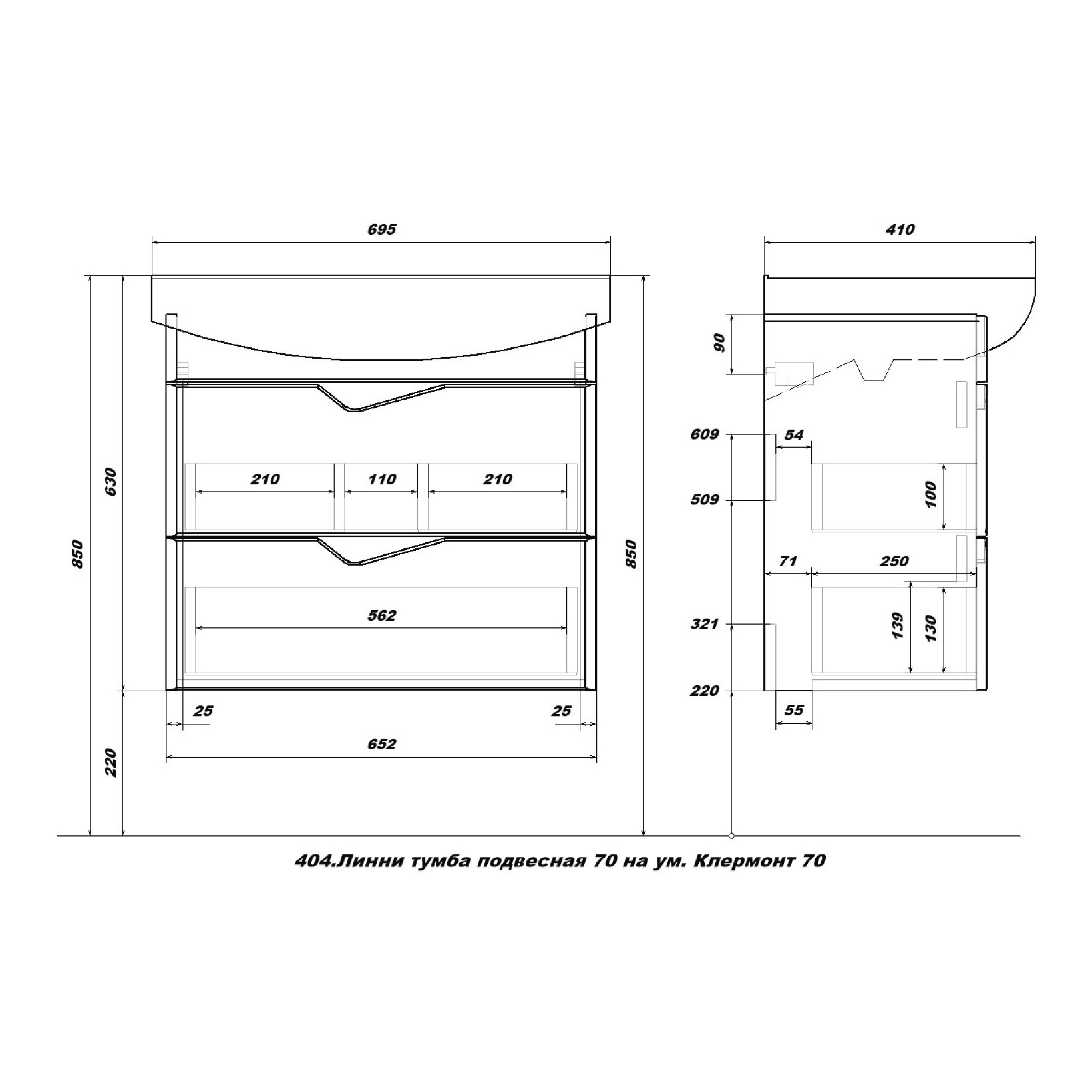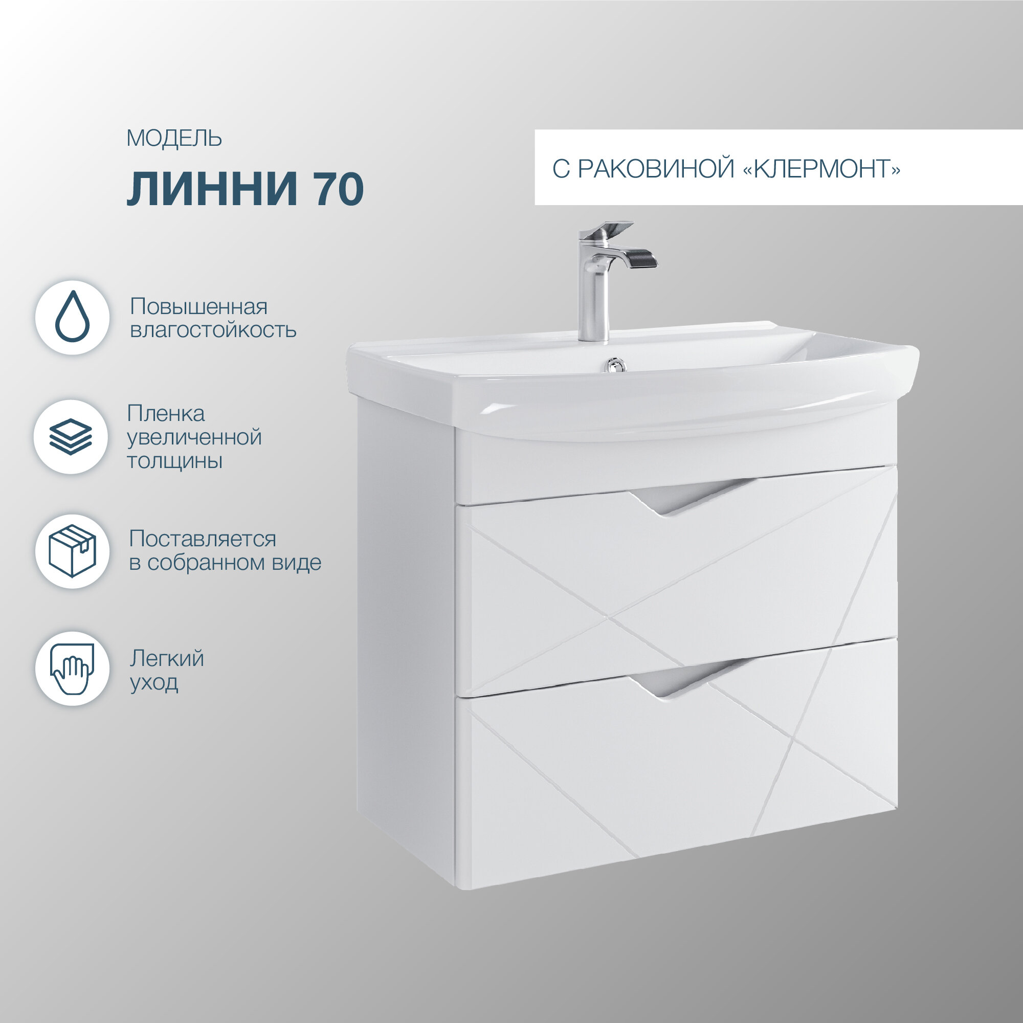 Тумба с раковиной SanStar Линни 70 подвесная белая (раковина Клермонт 70) Линни 404.1-1.4.1.ККЛЕ