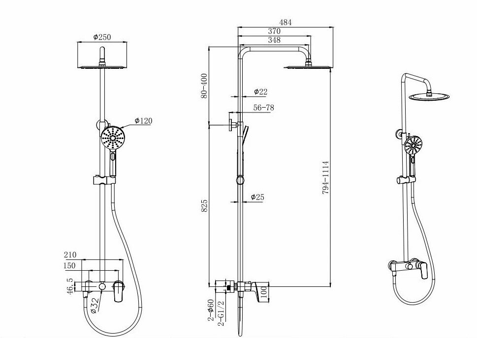 | Размер верхнего душа, мм | 250 |