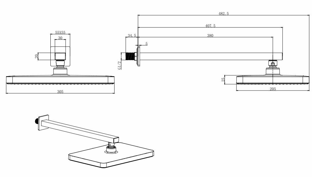 | В комплекте | верхний душ, держатель, монтажный набор, отражатель |