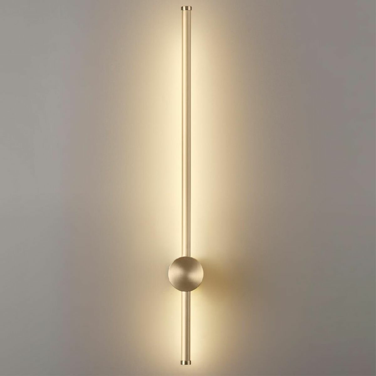 Светильник выполнен из прочного металла и имеет золотой цвет арматуры, что придает ему изысканный и современный вид. Высота светильника составляет 60 см, а ширина – 6 см, что позволяет его легко установить на стену.