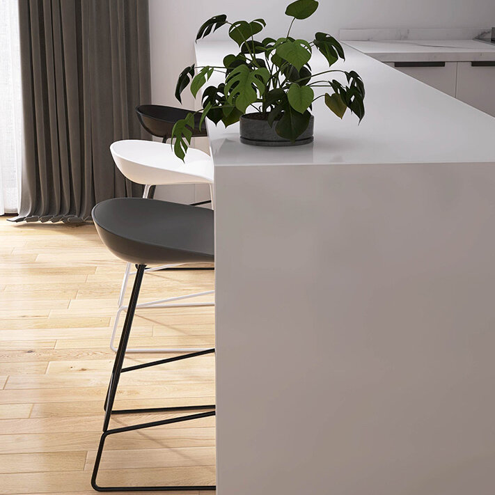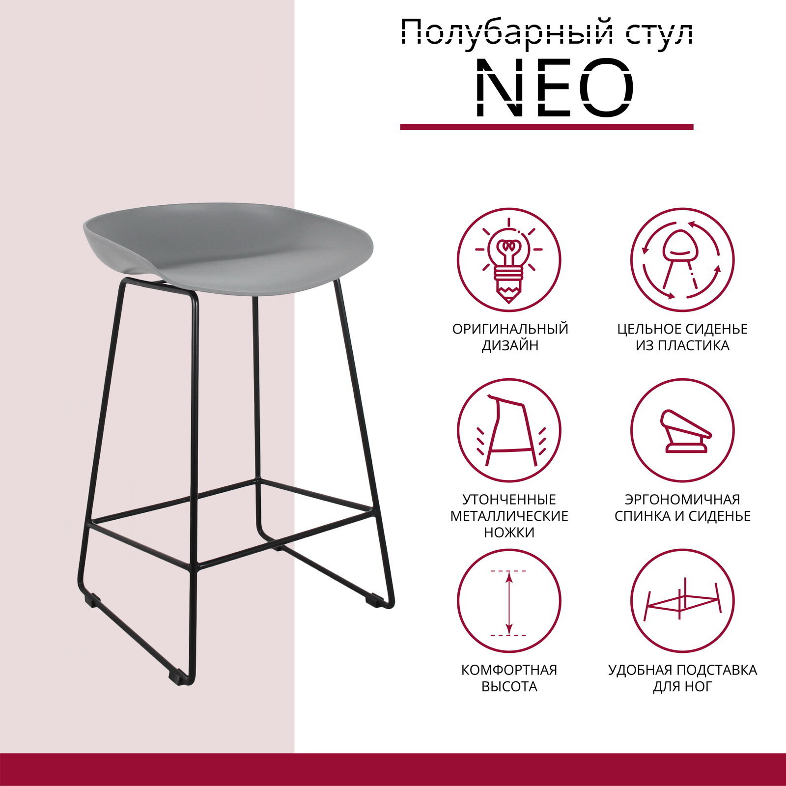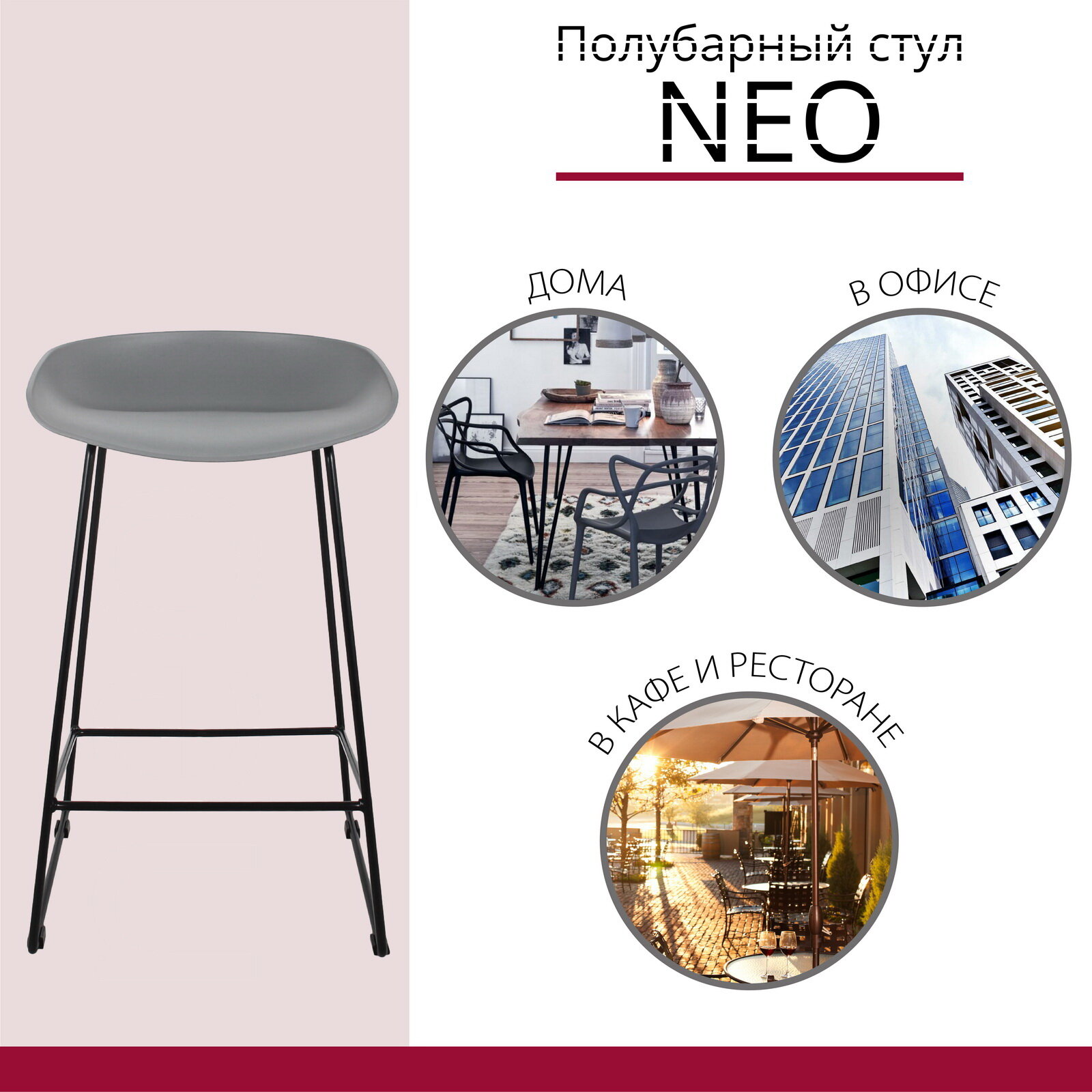 Художественное описание товара: Утончённые металлические хромированные опоры, сиденье из пластика с невысокой спинкой - это минималистический современный дизайн барного стула NEO белый.,