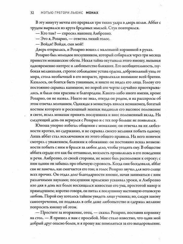 Признанный шедевр готической литературы и первый подлинный роман ужасов, способный напугать, увлечь и впечатлить своего читателя даже по прошествии двух веков. Насыщенный эротикой, черной магией, насилием и потусторонней жутью, «Монах» стал настоящей сенсацией своего времени, откровенным антиклерикализмом вызвал гнев церкви и навлек на своего создателя обвинения в аморальности и святотатстве. Трагическая история искушения, утраты веры и падения, в которой есть все: интриги и заговоры, любовные страсти, пороки испанского духовенства, кровная месть, погони и сражения на шпагах, заклинатели духов, неупокоившиеся мертвецы и сам Князь Тьмы. Для этого издания известный переводчик и писатель Алина Немирова сделала не просто новый, первый за 30 лет, перевод, но и существенно адаптировала язык и стиль романа, приблизив его к стандартам современной литературы ужасов. Теперь «Монах» стал еще более эротичным, атмосферным и пугающим. Книга украшена завораживающими иллюстрациями заслуженного художника РФ, профессора ВГИКа Александра Дудина, с первого взгляда погружающими читателя в историю о несчастном, что продал душу дьяволу.