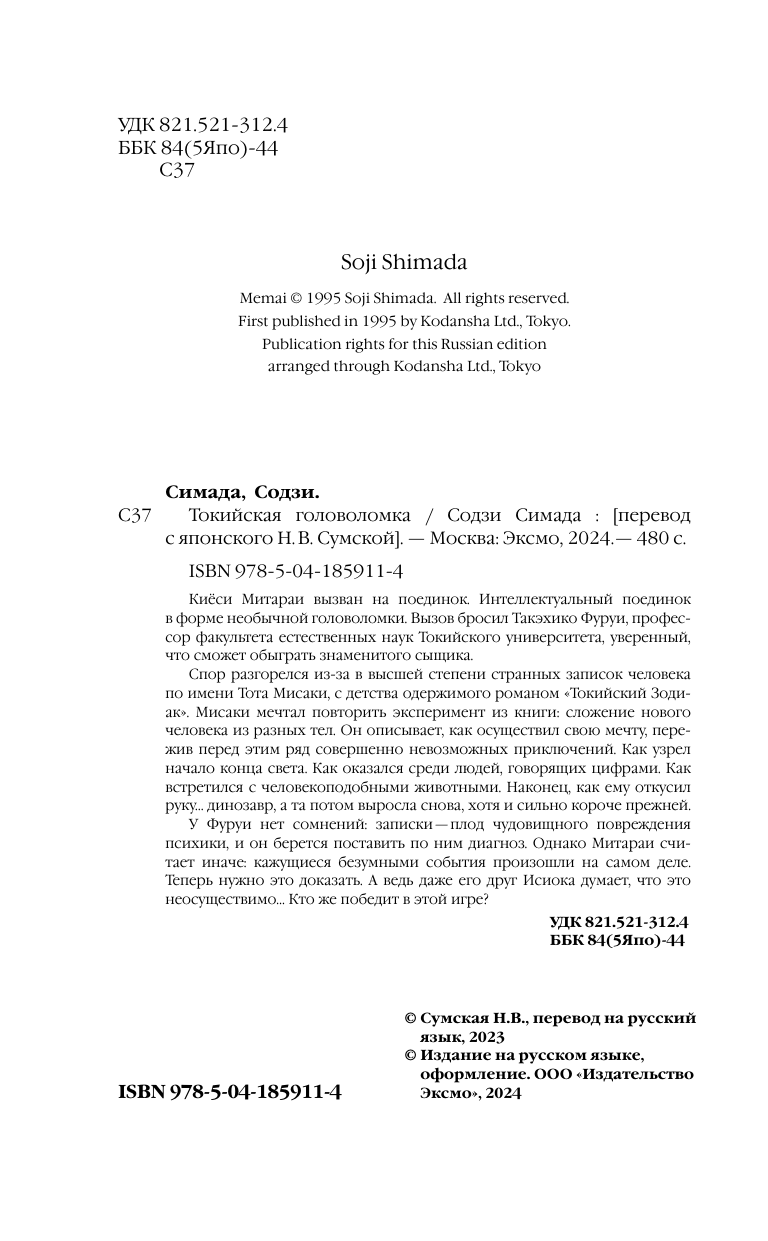 Книга: Токийская головоломка (Симада Содзи); ООО "Издательство "Эксмо", 2024