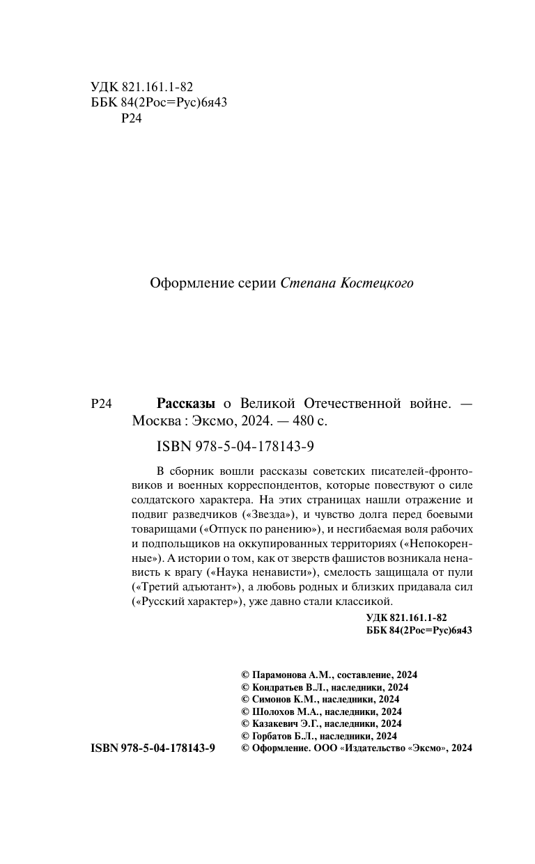 Рассказы о Великой Отечественной войне (Симонов К.М., Шолохов М.А., Толстой А.Н., Кондратьев В.Л., Казакевич Э.Г., Горбатов Б.Л.); ООО "Издательство "Эксмо", 2024