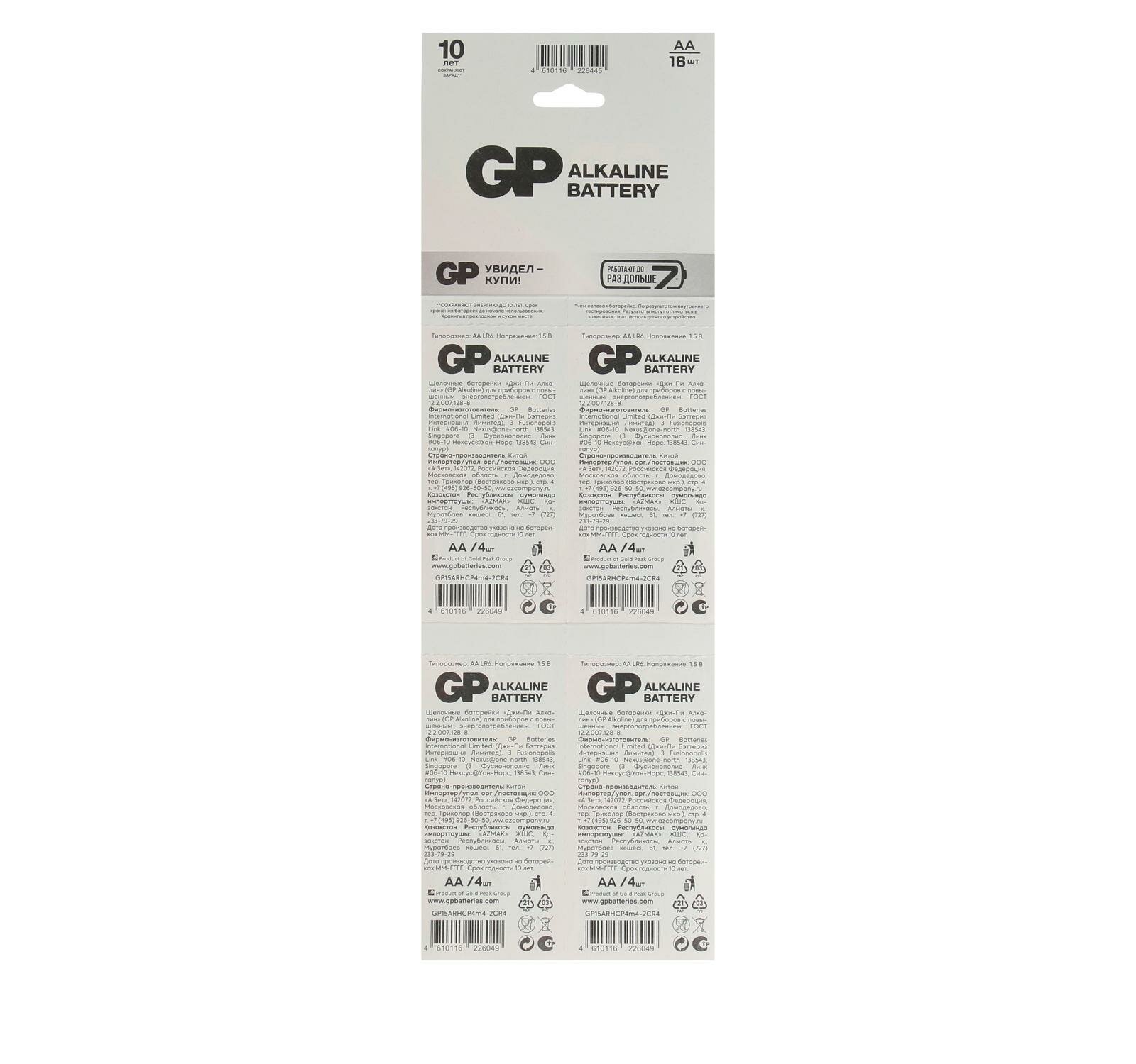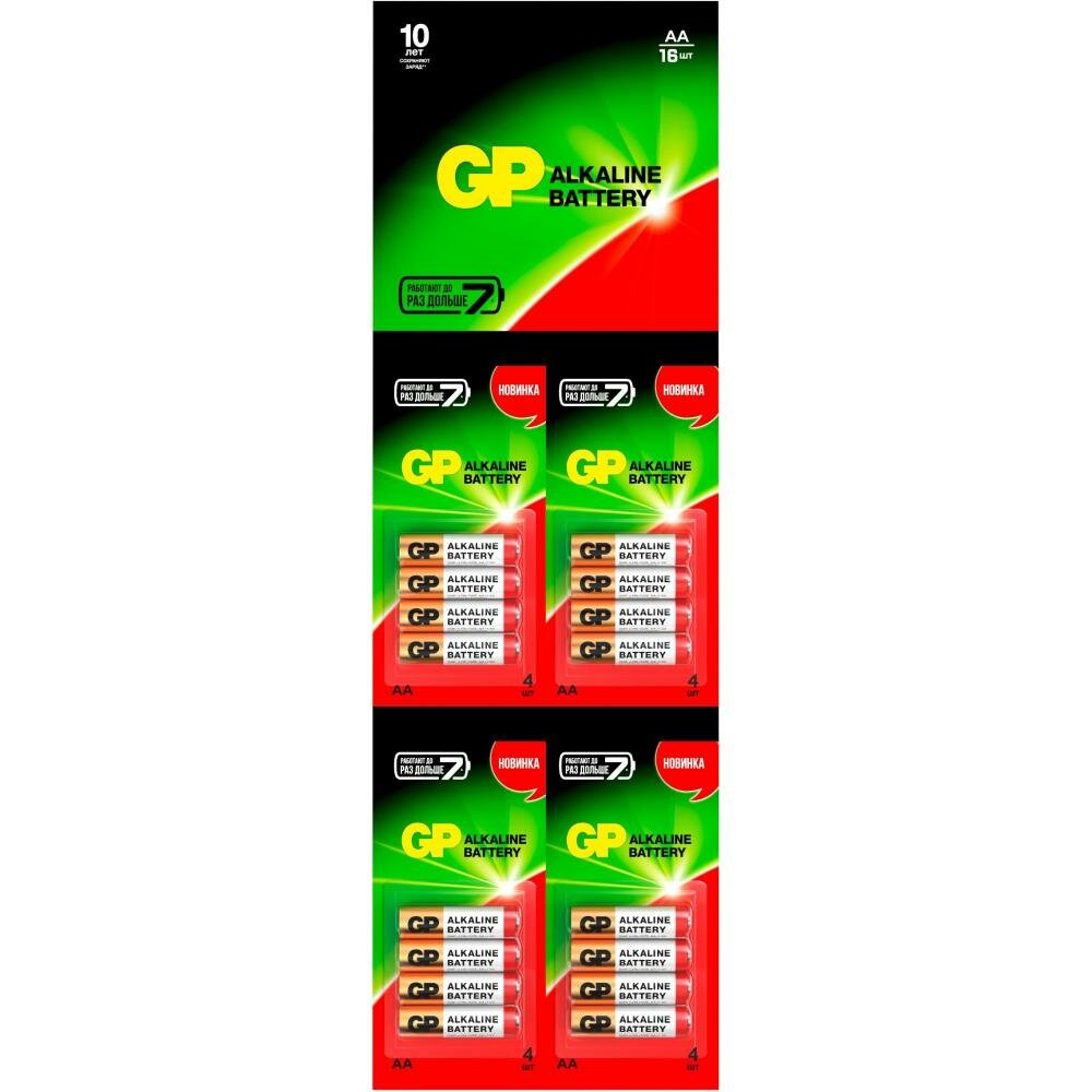 Батарейка GP Alkaline 15ARHCP4m4-2CR4 AA, 16 шт