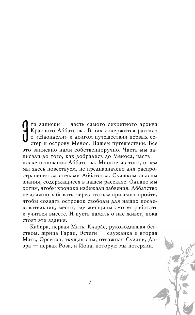 Семья Кабиры долгое время хранила тайну источника Анджи - средоточия невероятной силы. Влюбившись, Кабира раскрывает тайну своему возлюбленному Искану, не подозревая, что его намерения в отношении Анджи далеко не чисты. Сын визиря, Искан готов сделать все, чтобы прийти к власти. Кабира начинает долгий путь к самой себе и к острову Менос, на которой, спустя много лет, ей предстоит основать Красное Аббатство. Место, где девушки и женщины из всех уголков света могут работать и учиться вместе.
