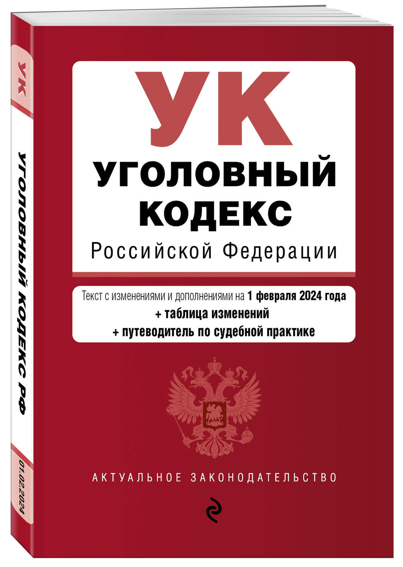 Настоящее издание содержит текст Уголовного кодекса Российской Федерации с изменениями и дополнениями на 1 февраля 2024 года с удобной навигацией, таблицей изменений и путеводителем по судебной практике. Если существуют изменения, вступающие в силу позднее, то вместе с редакцией нормы, действующей на эту дату, приводится норма в новой редакции и указывается дата, с которой она вступает в силу.
