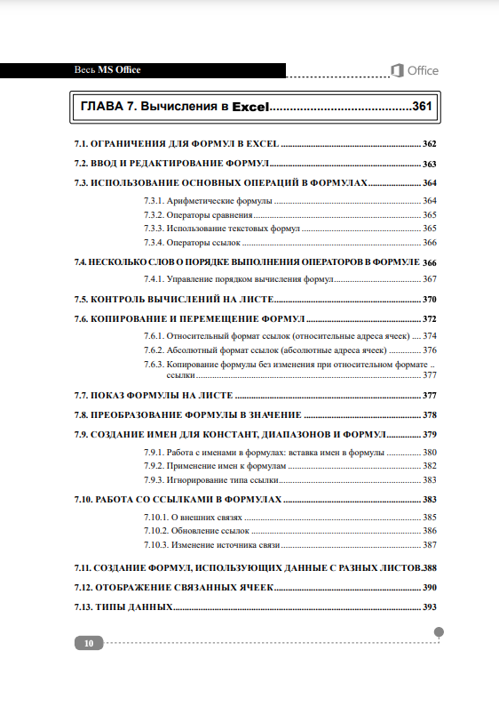 Особенностью книги является мультиверсионность рассмотренных программ MS Office — от версии 2007 года до последних версий на данный момент. Это позволит пользователям с разными версиями офисных продуктов найти в книге полезный для себя материал именно для своей версии.