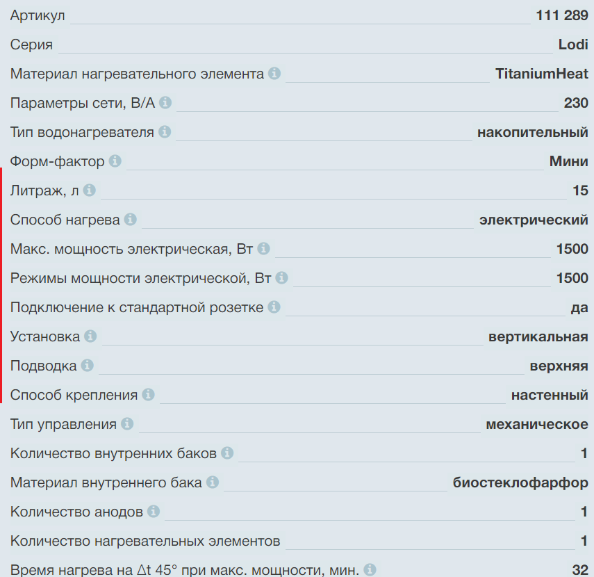 | Колво ТЭНов | 1 |