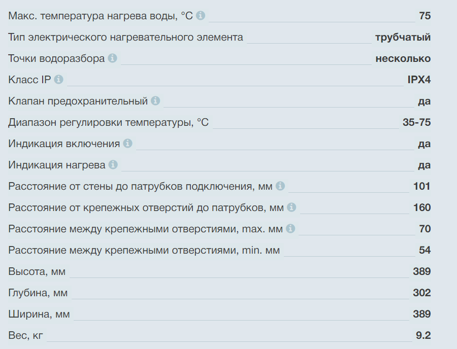 | Максимальная температура нагрева воды (C) | 75 |