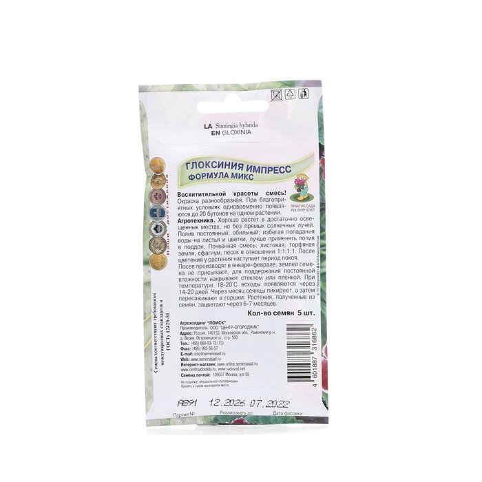 Семена Глоксиния импресс Поиск Формула микс 5 шт