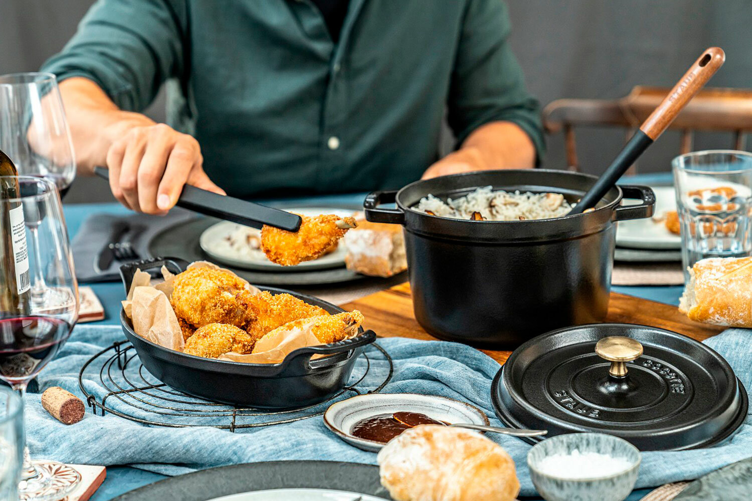 | Уход | Изготовлен из чугуна, покрытого эмалью снаружи и внутри. Подходит для использования на всех типах плит и в духовке. Перед первым использованием снять этикетки, тщательно вымыт |