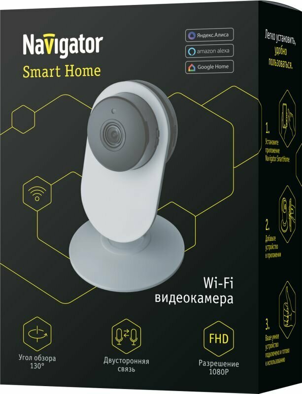 видеокамера NAVIGATOR FHD 1080P 1920х1080 2Мп 20IP WiFi 10м угол130 серый (14547)